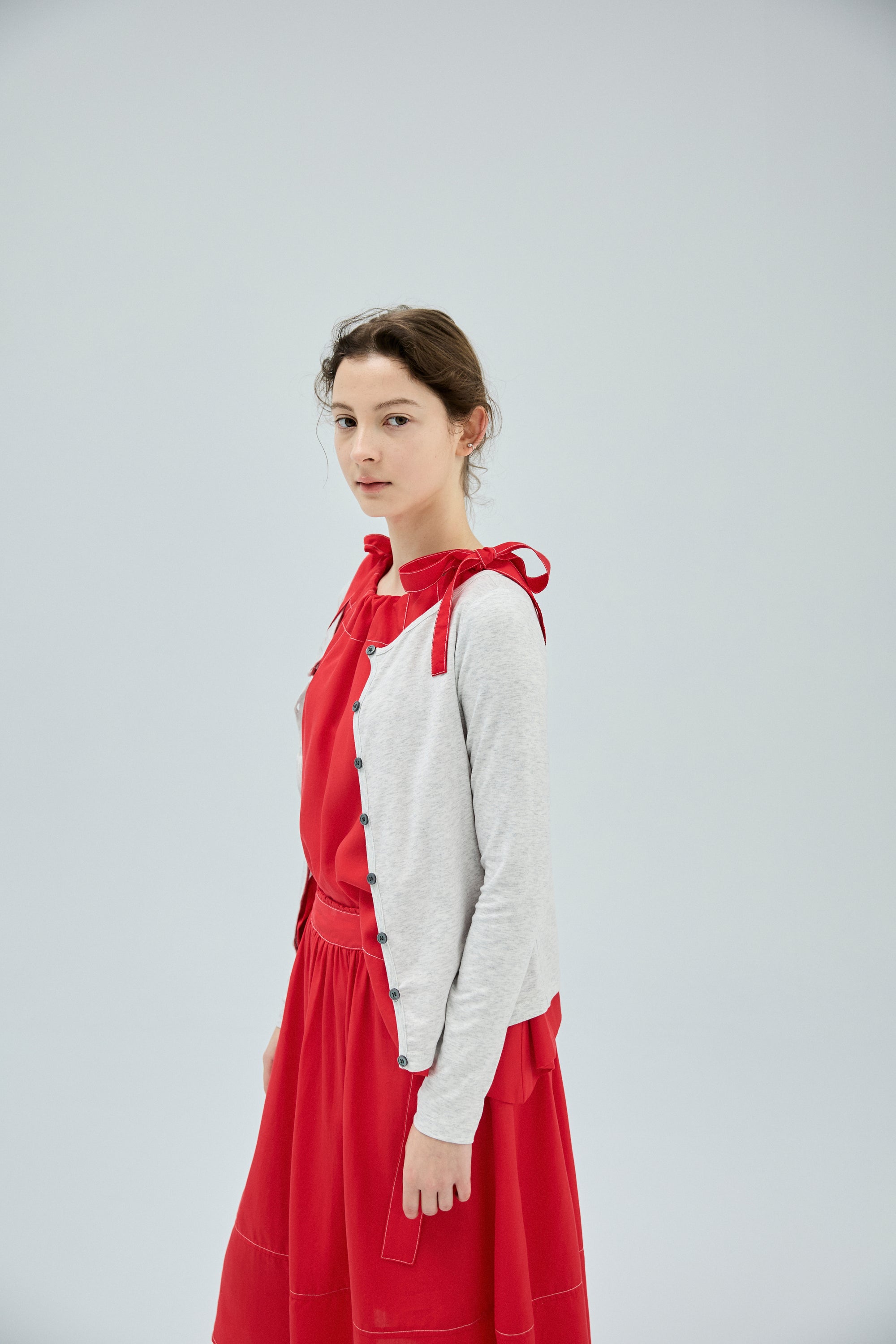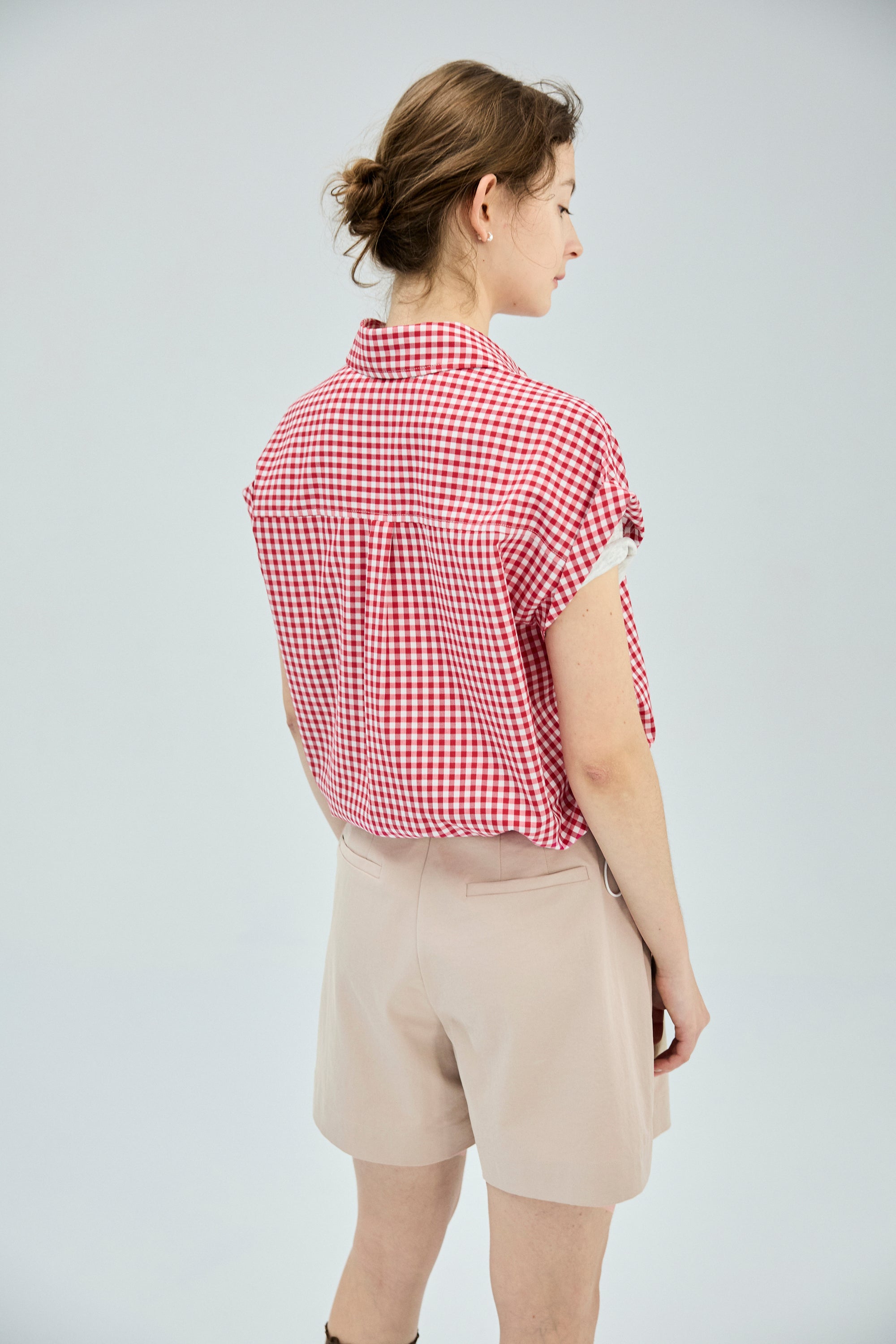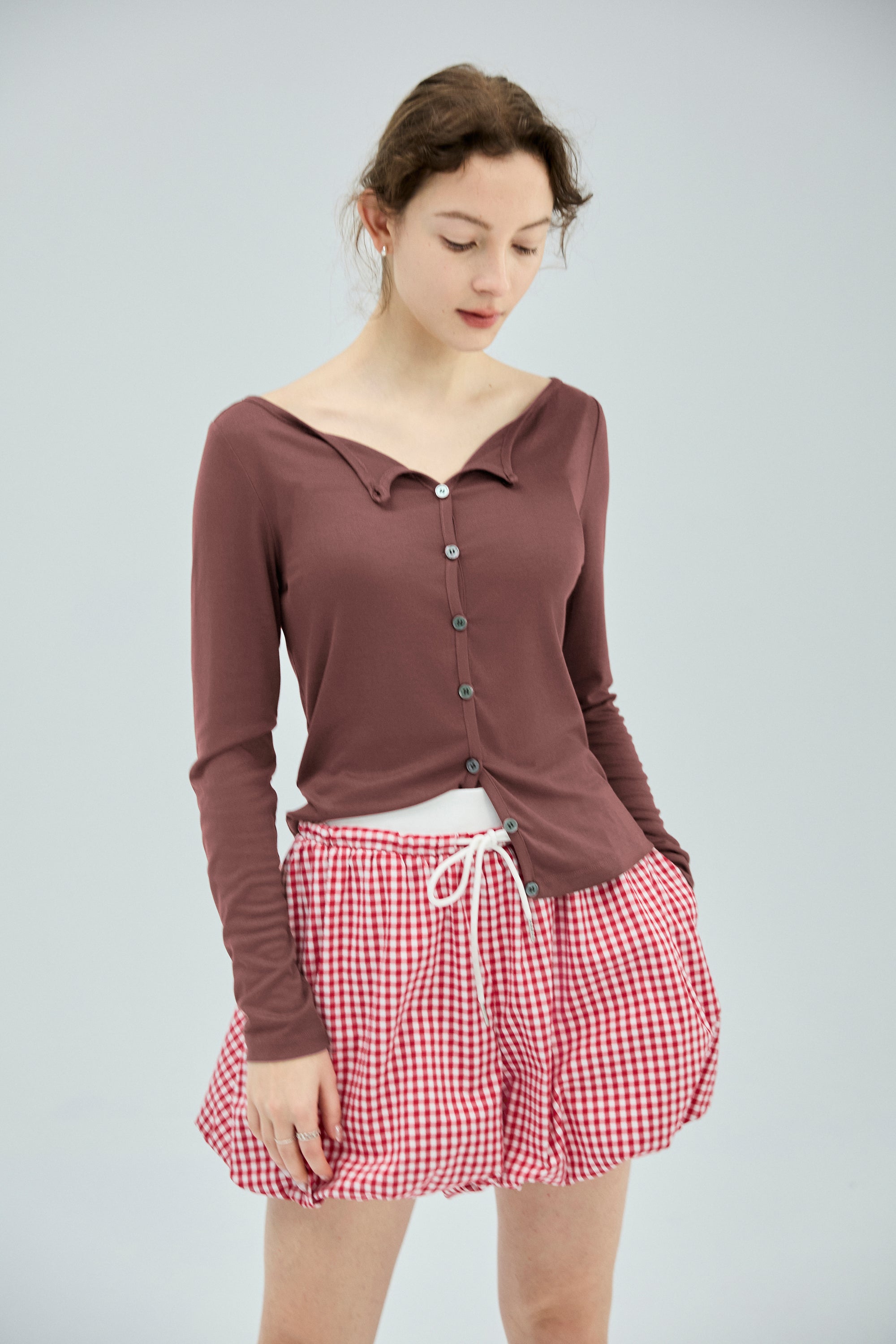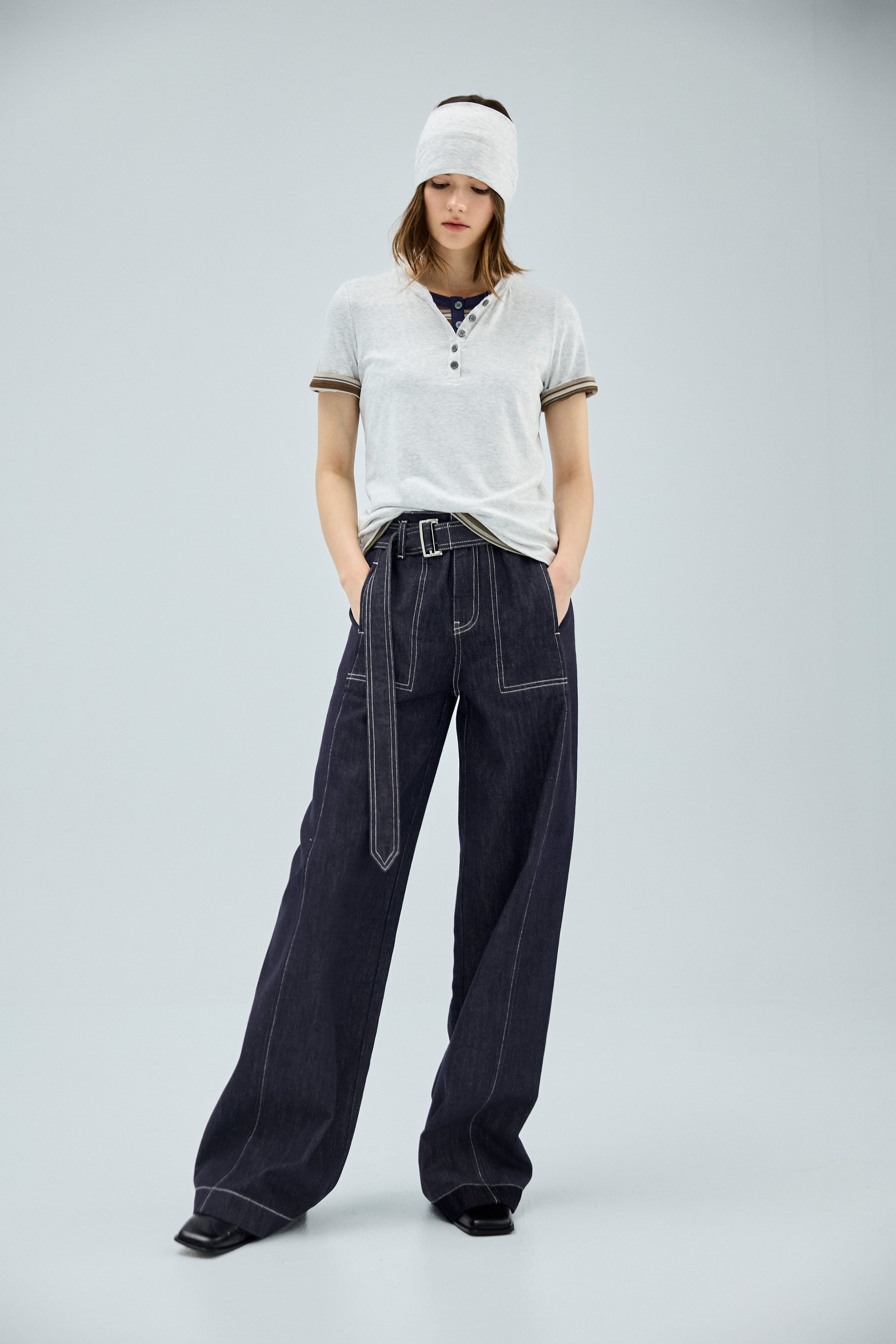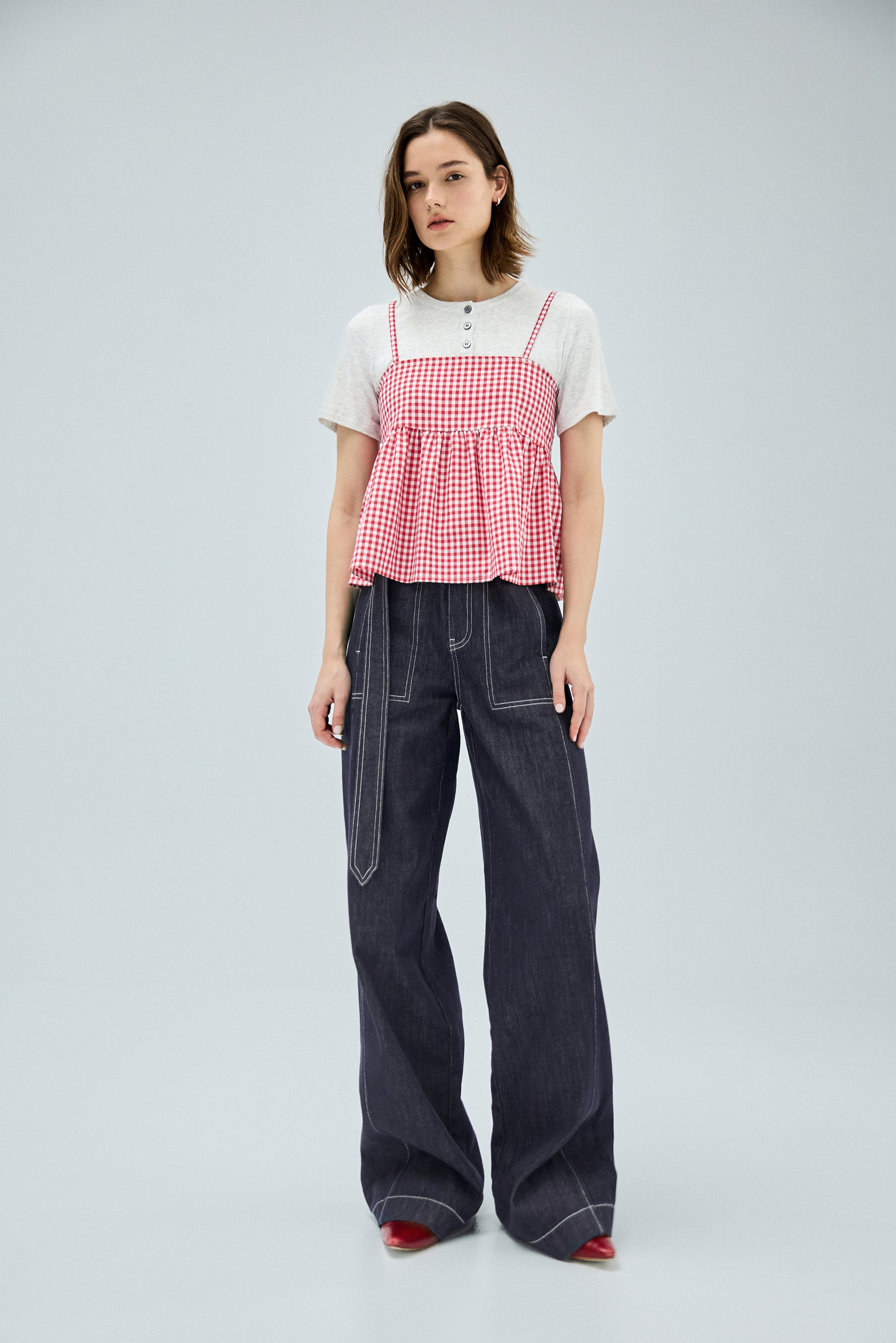 透氣親膚羊毛混紡抓皺下襬短袖TEE-米