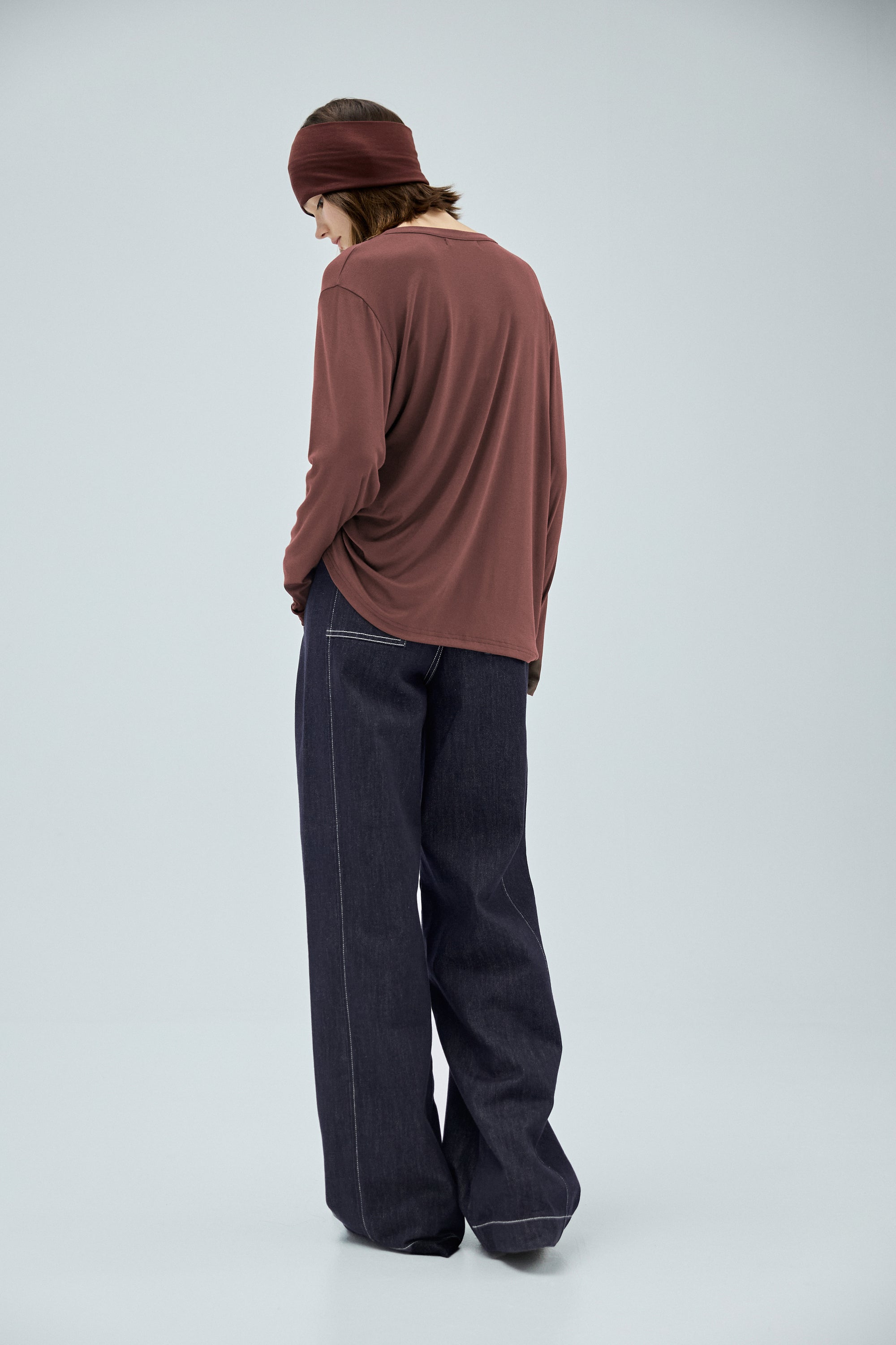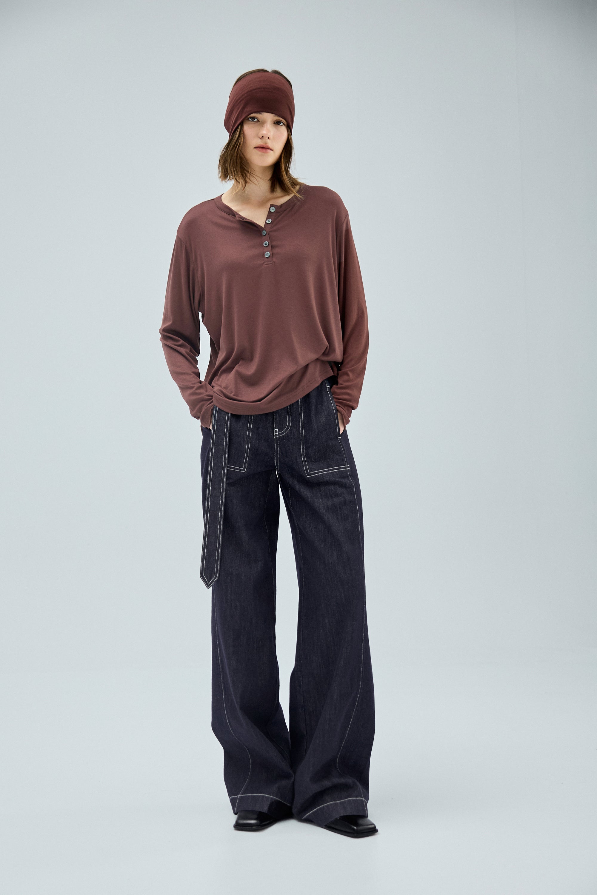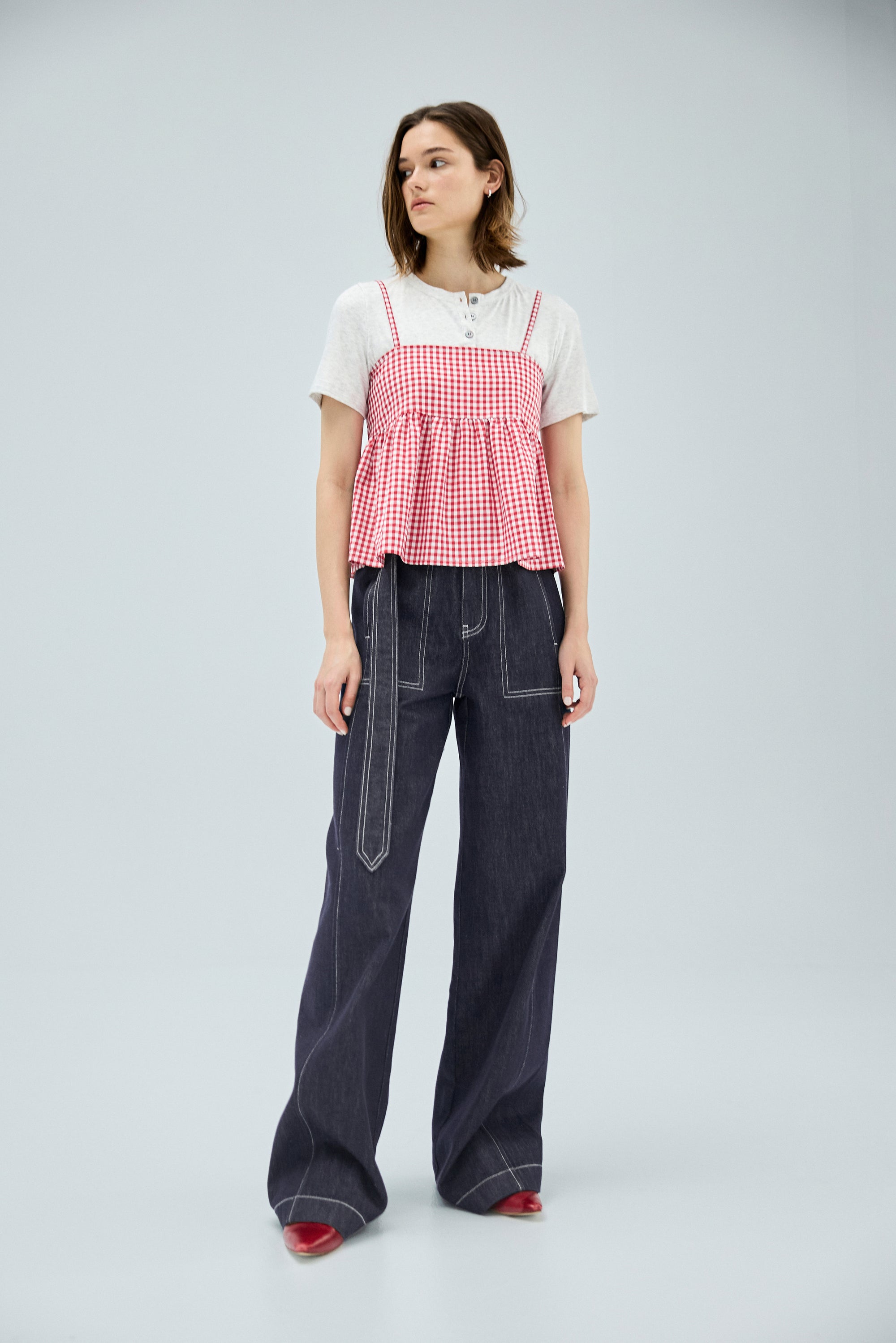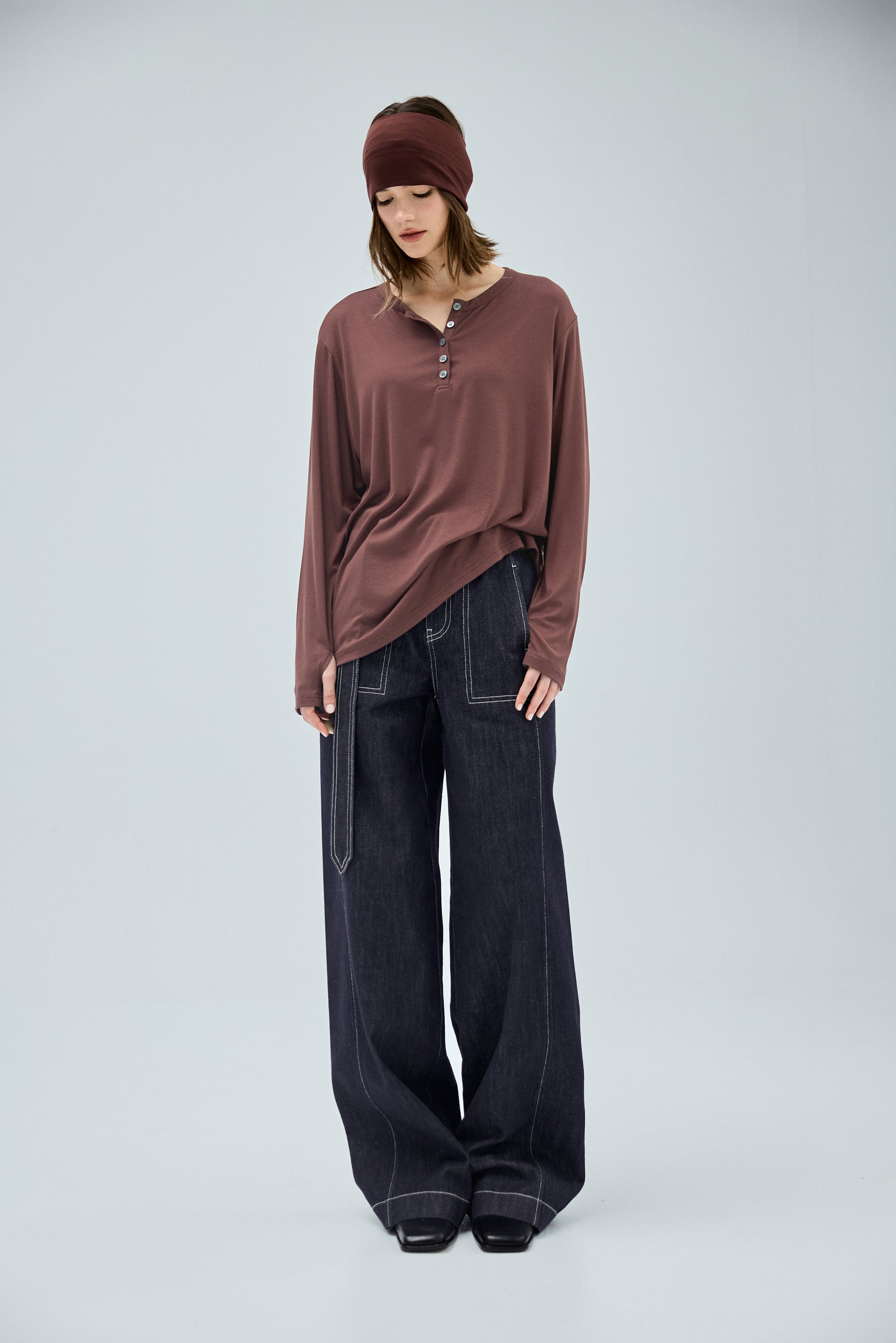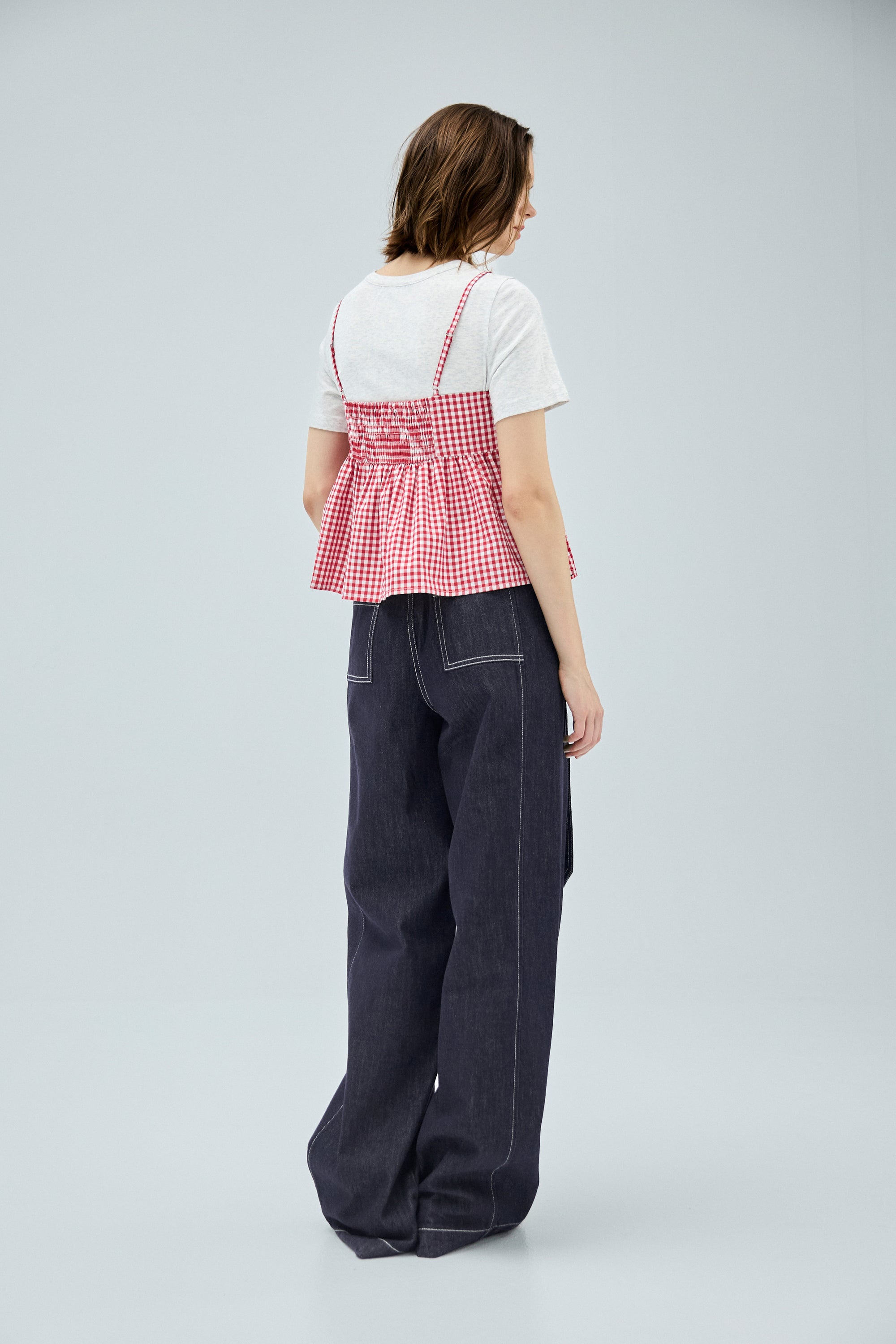 透氣親膚羊毛混紡抓皺下襬短袖TEE-米