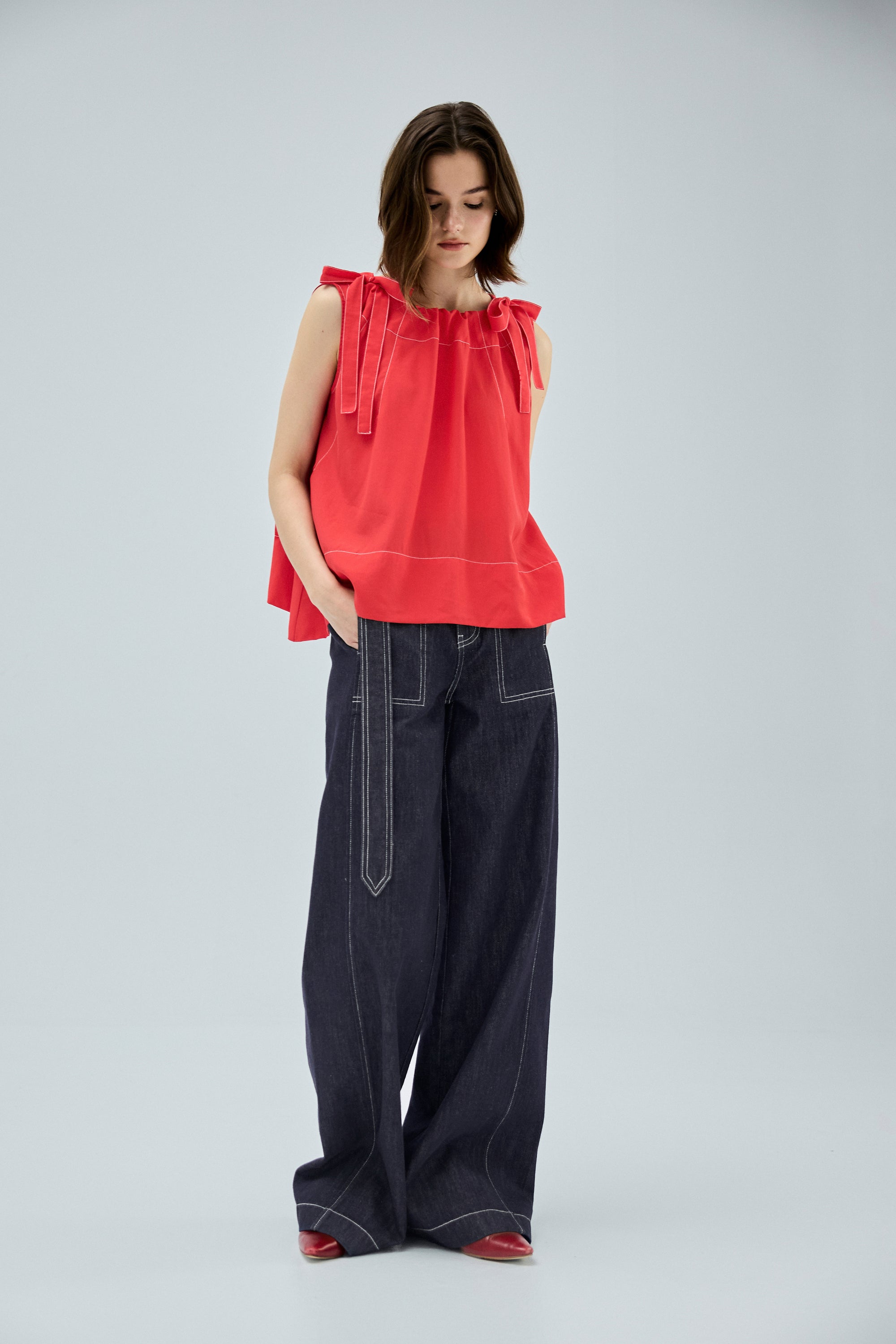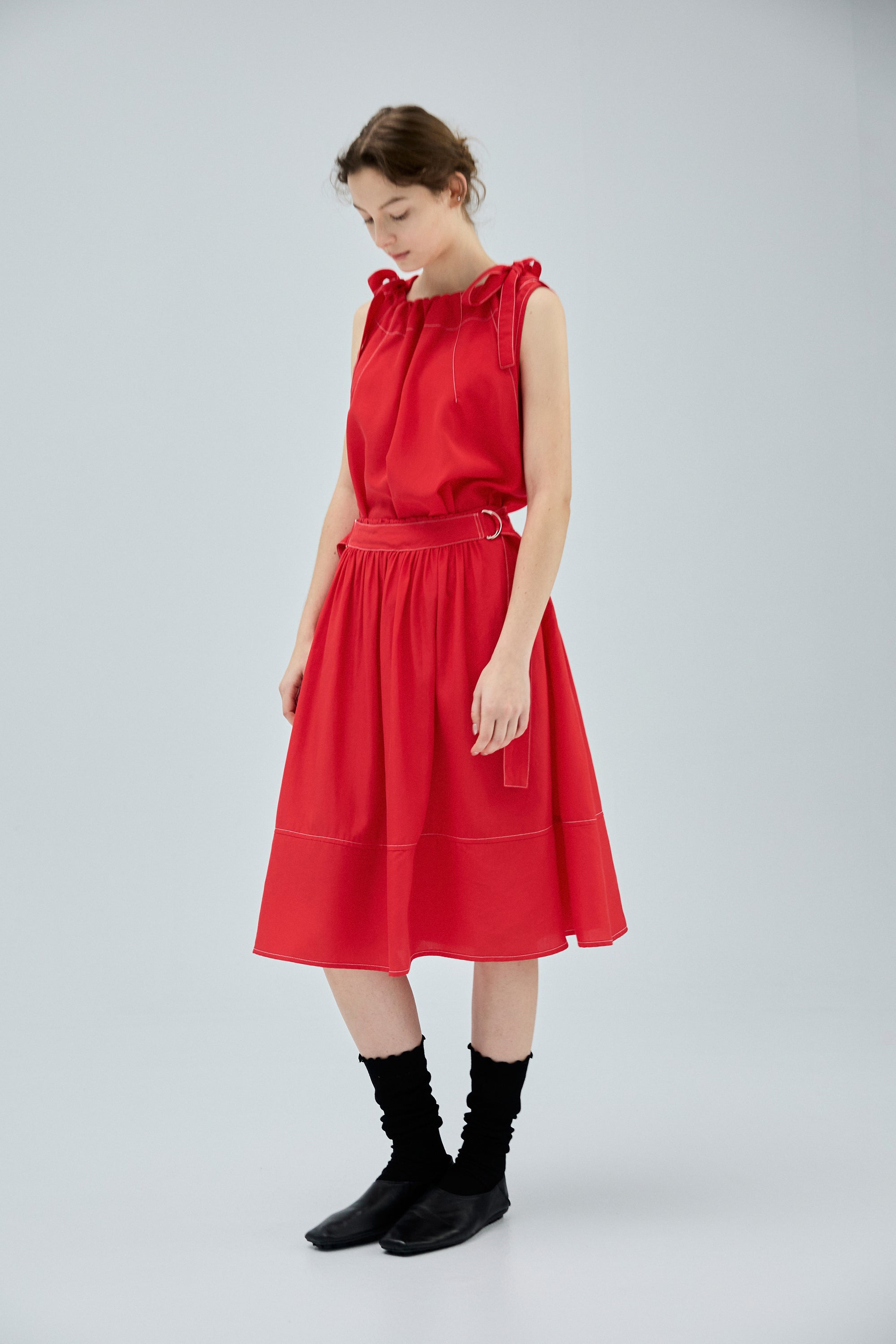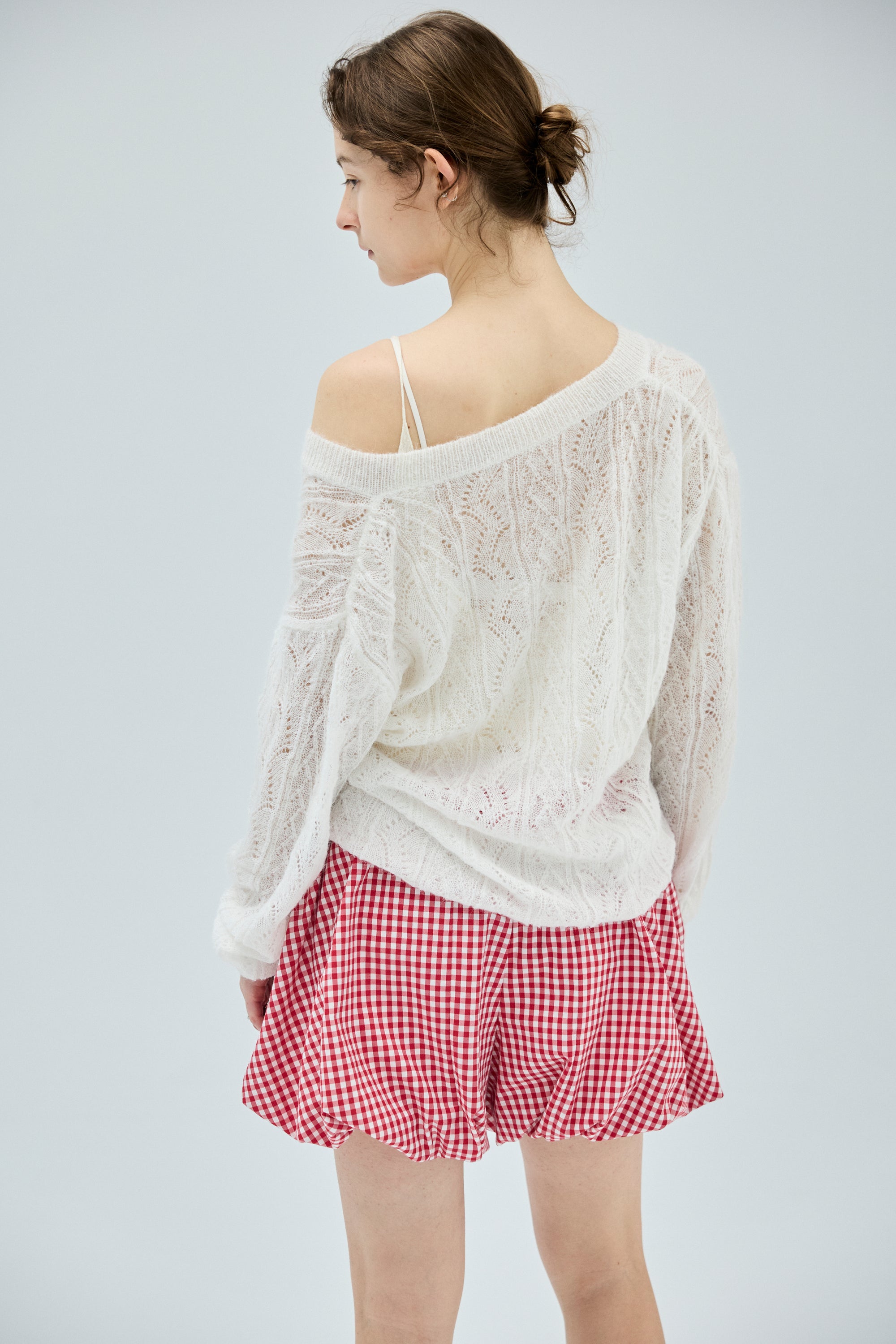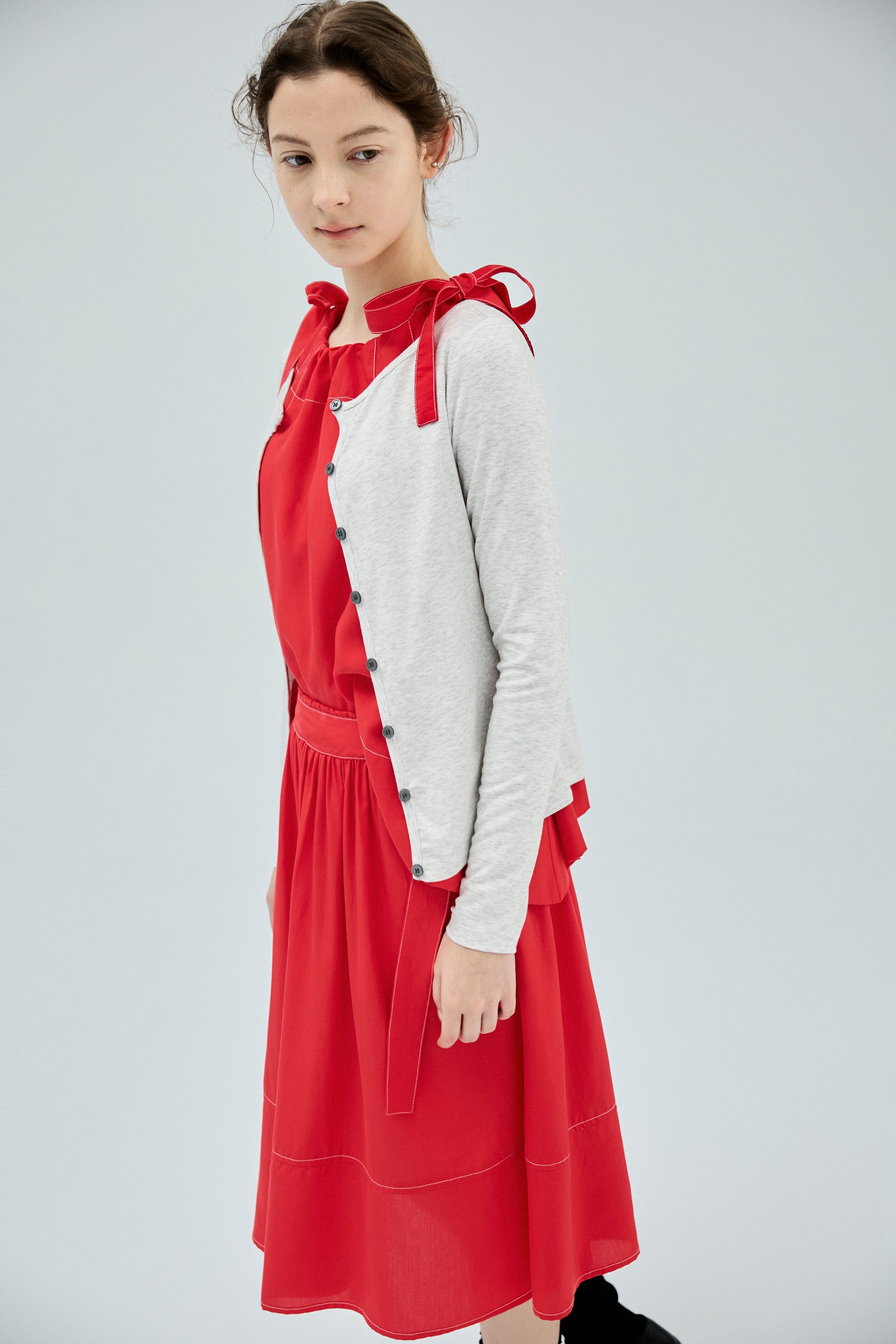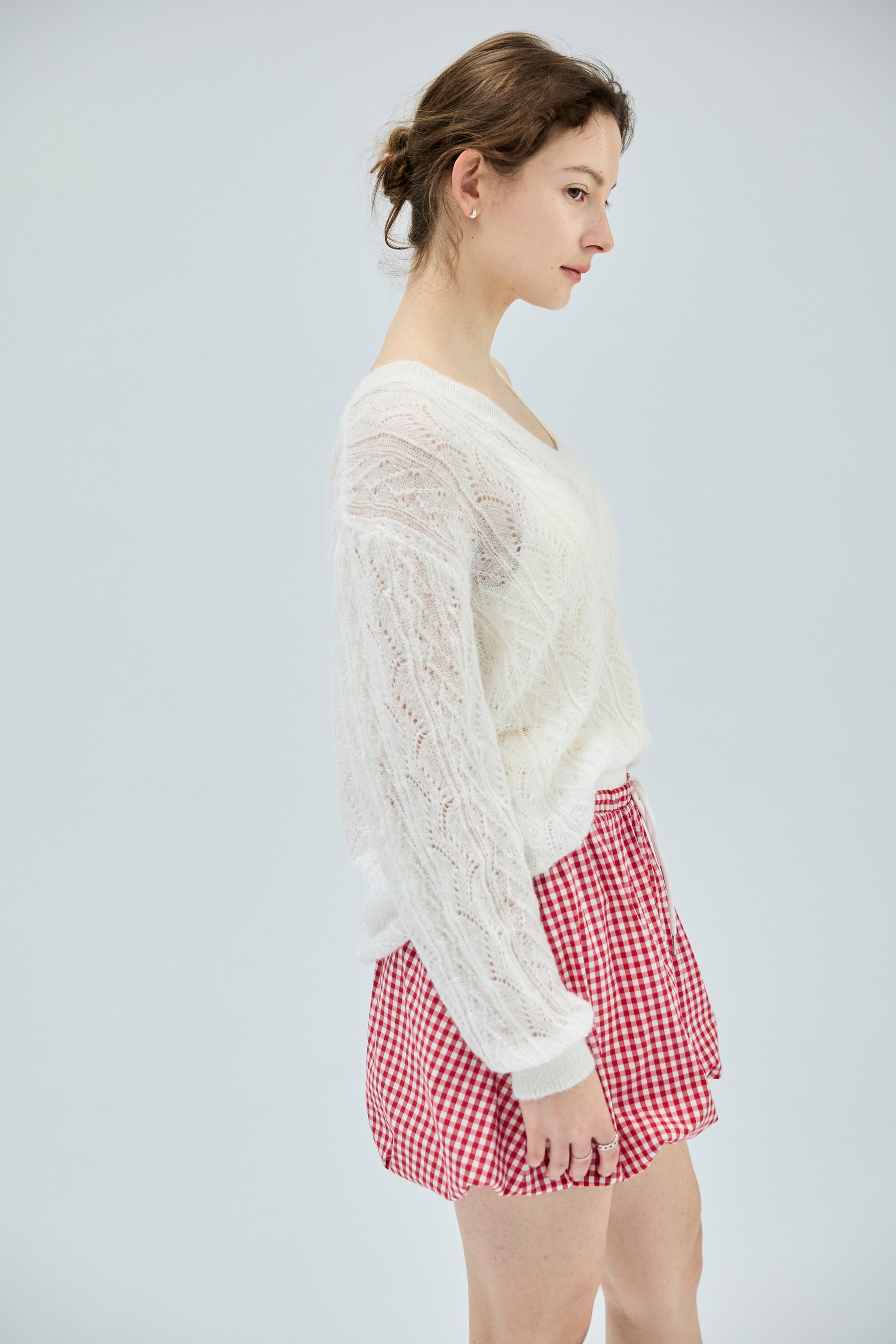 透氣親膚羊毛混紡抓皺下襬短袖TEE-米