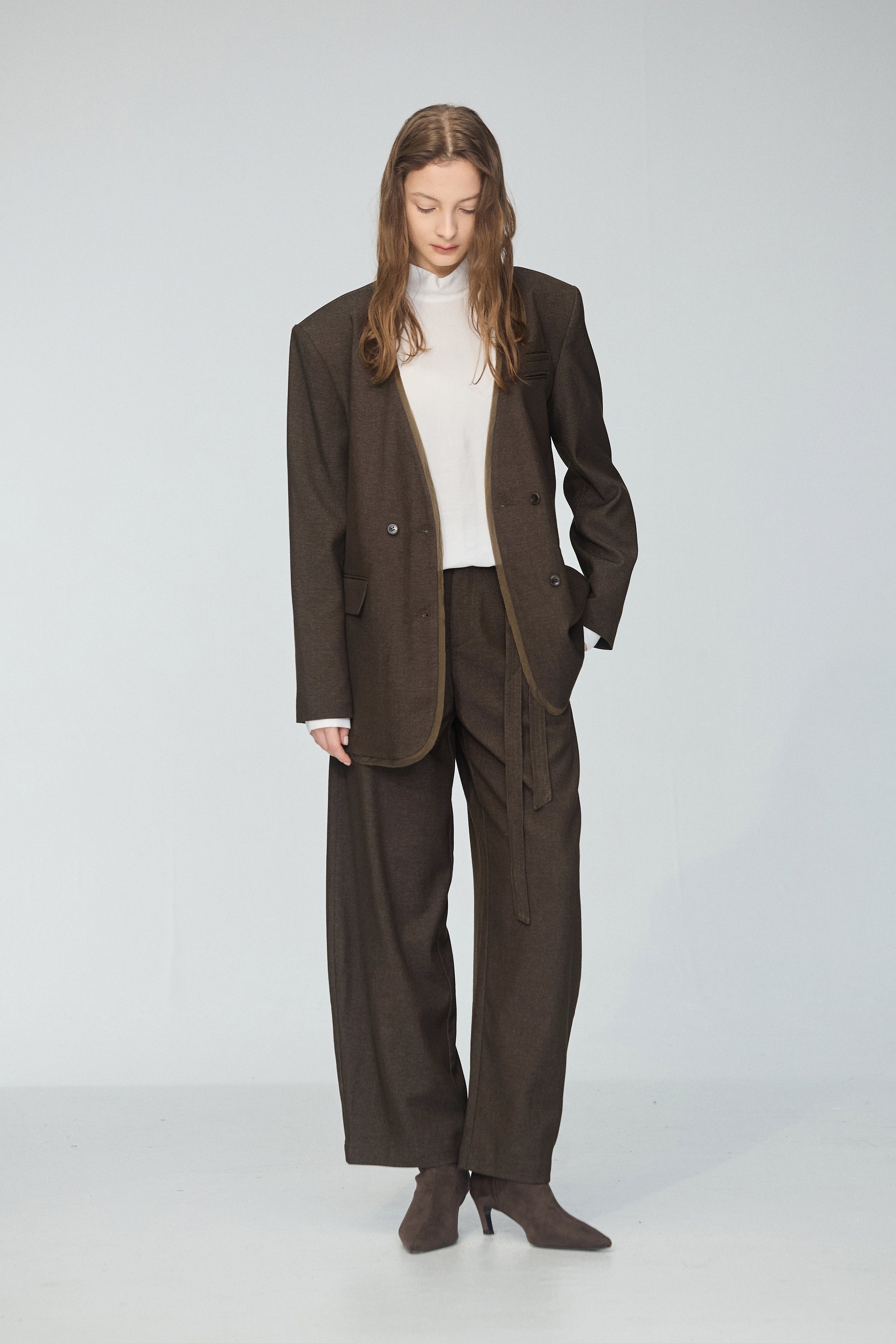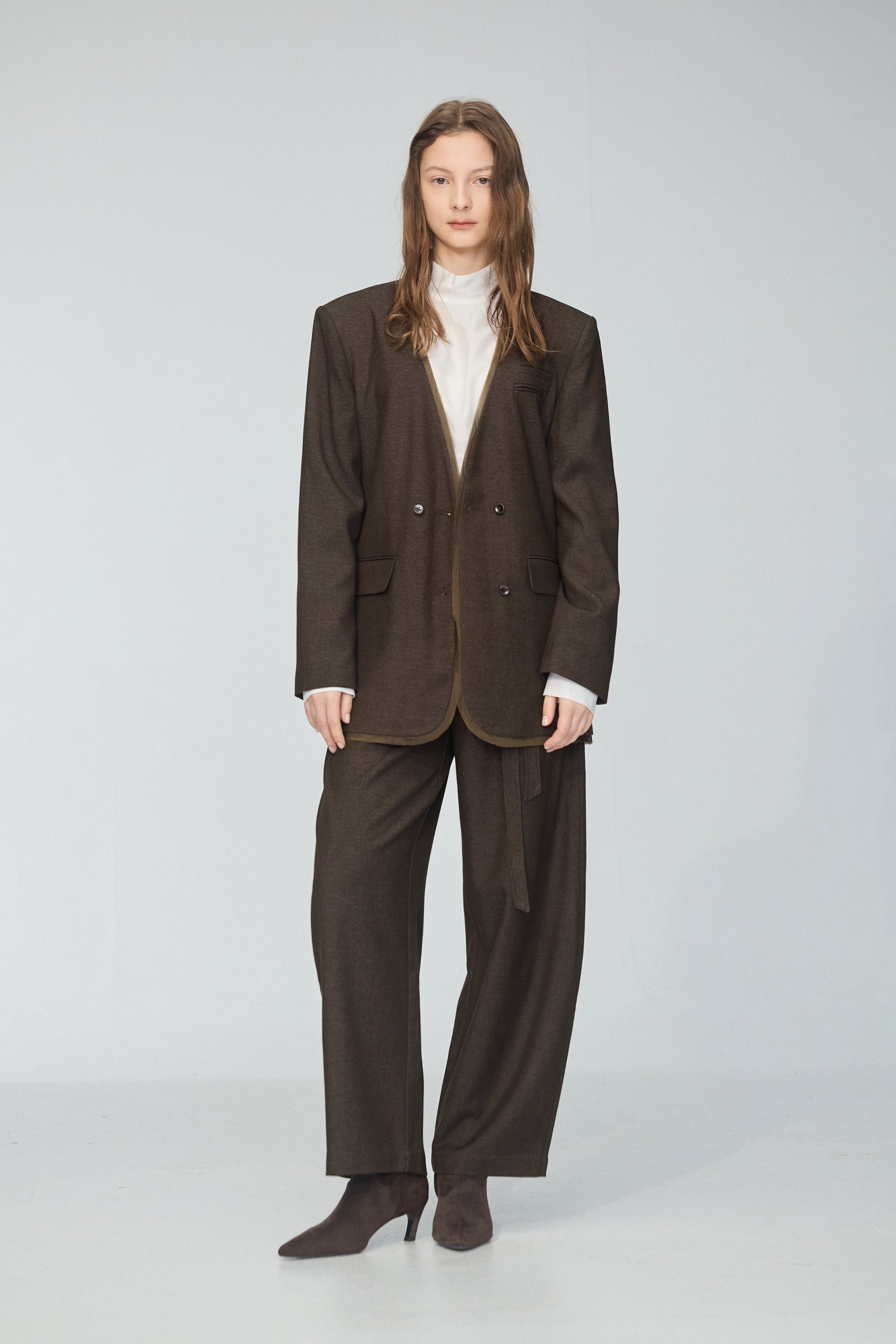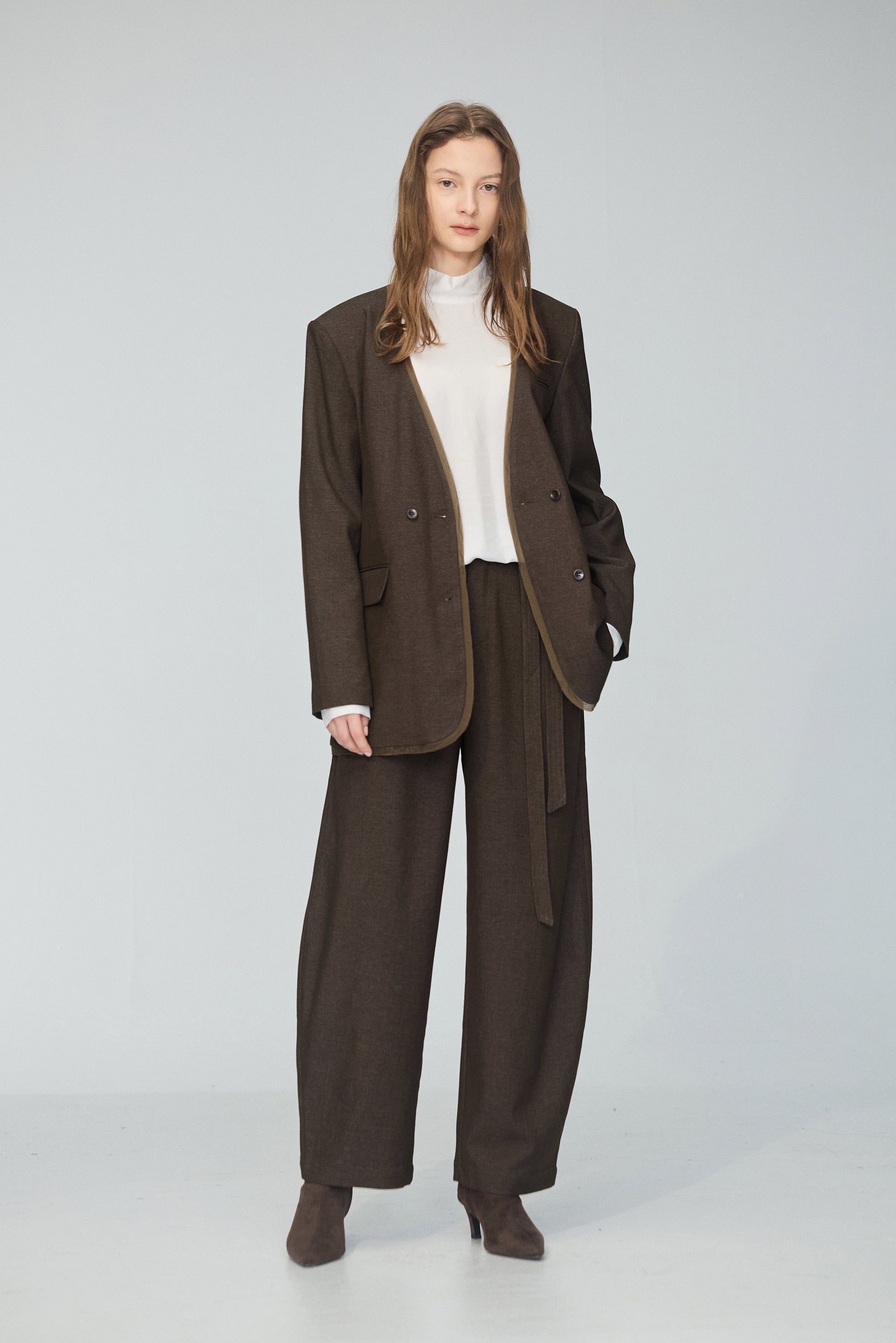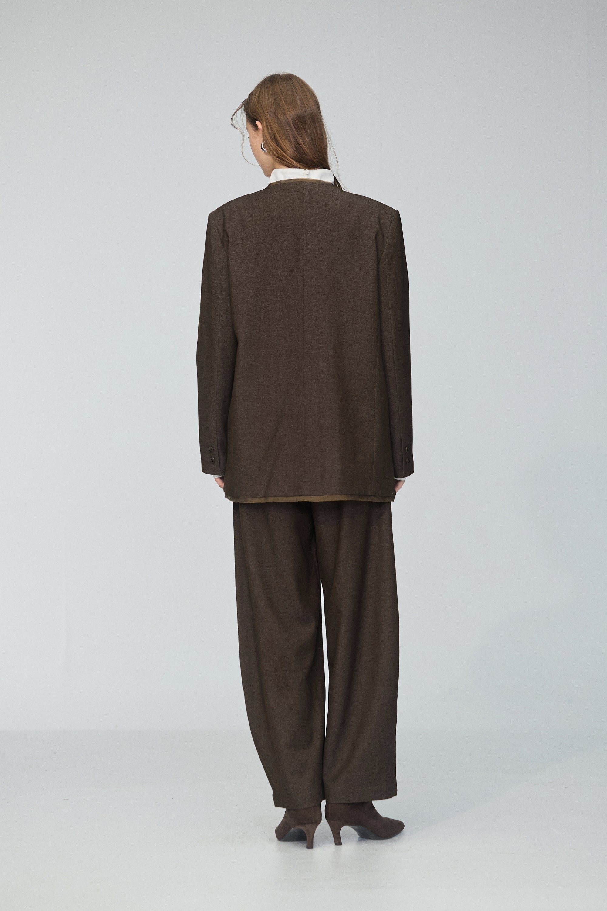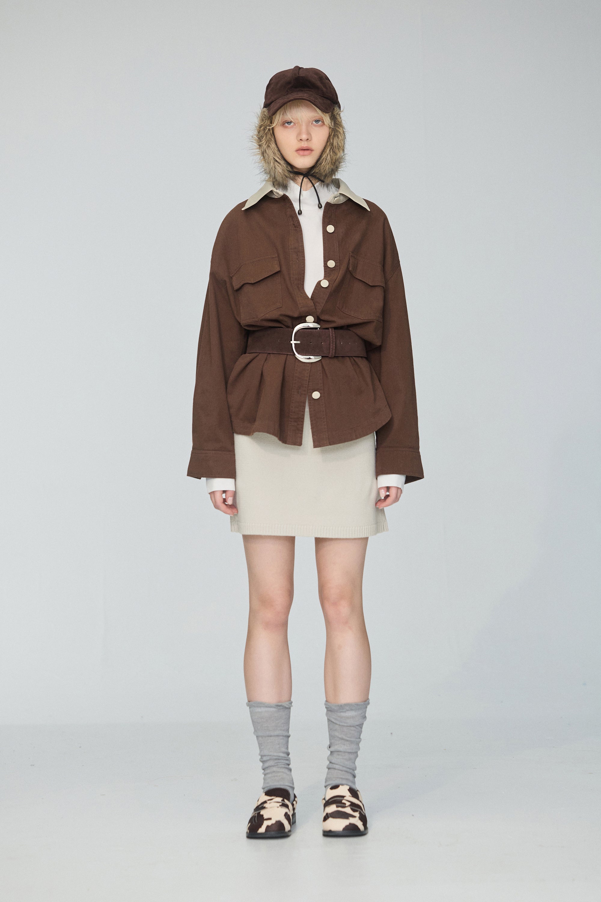 皮革配色拼接寬版襯衫-咖