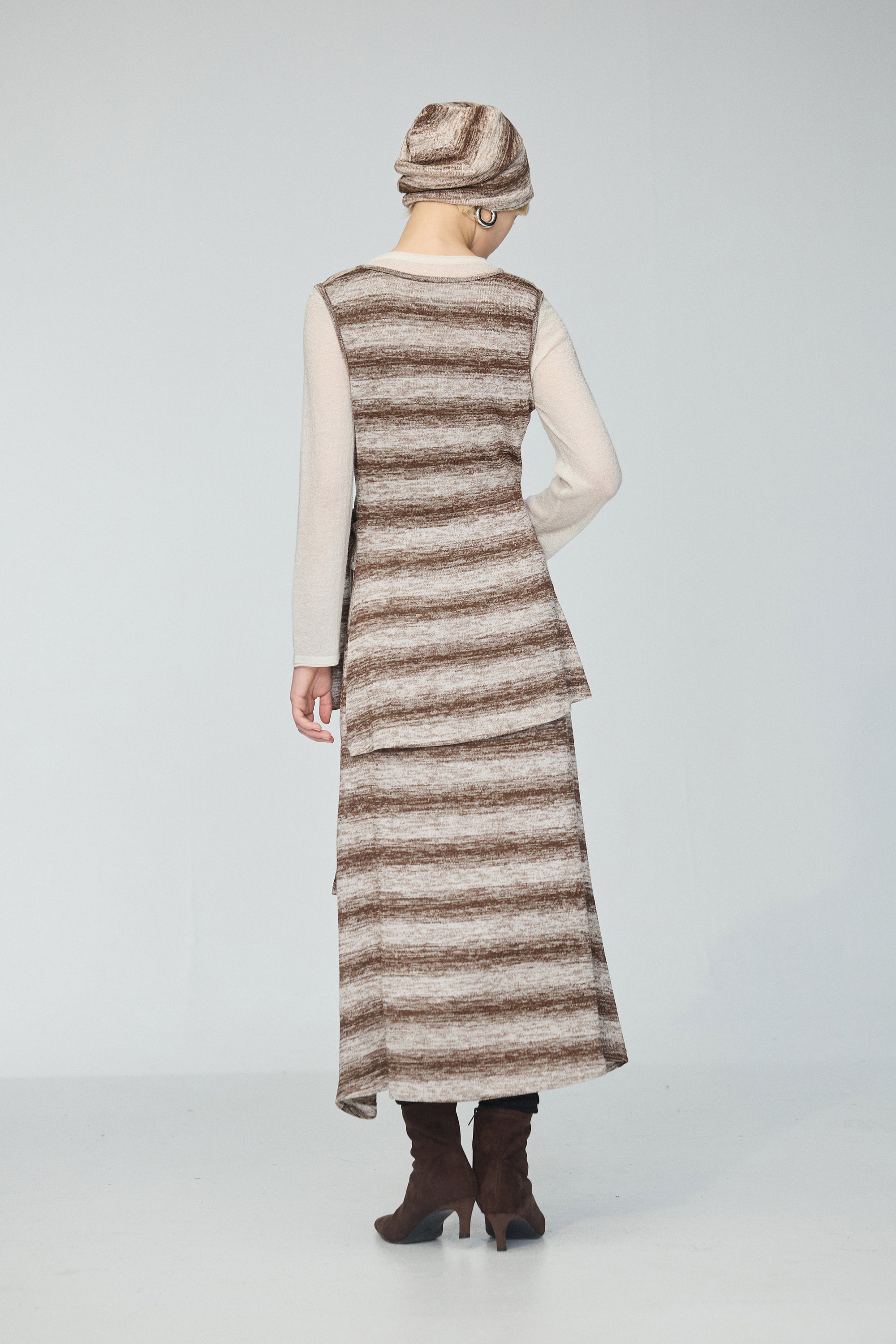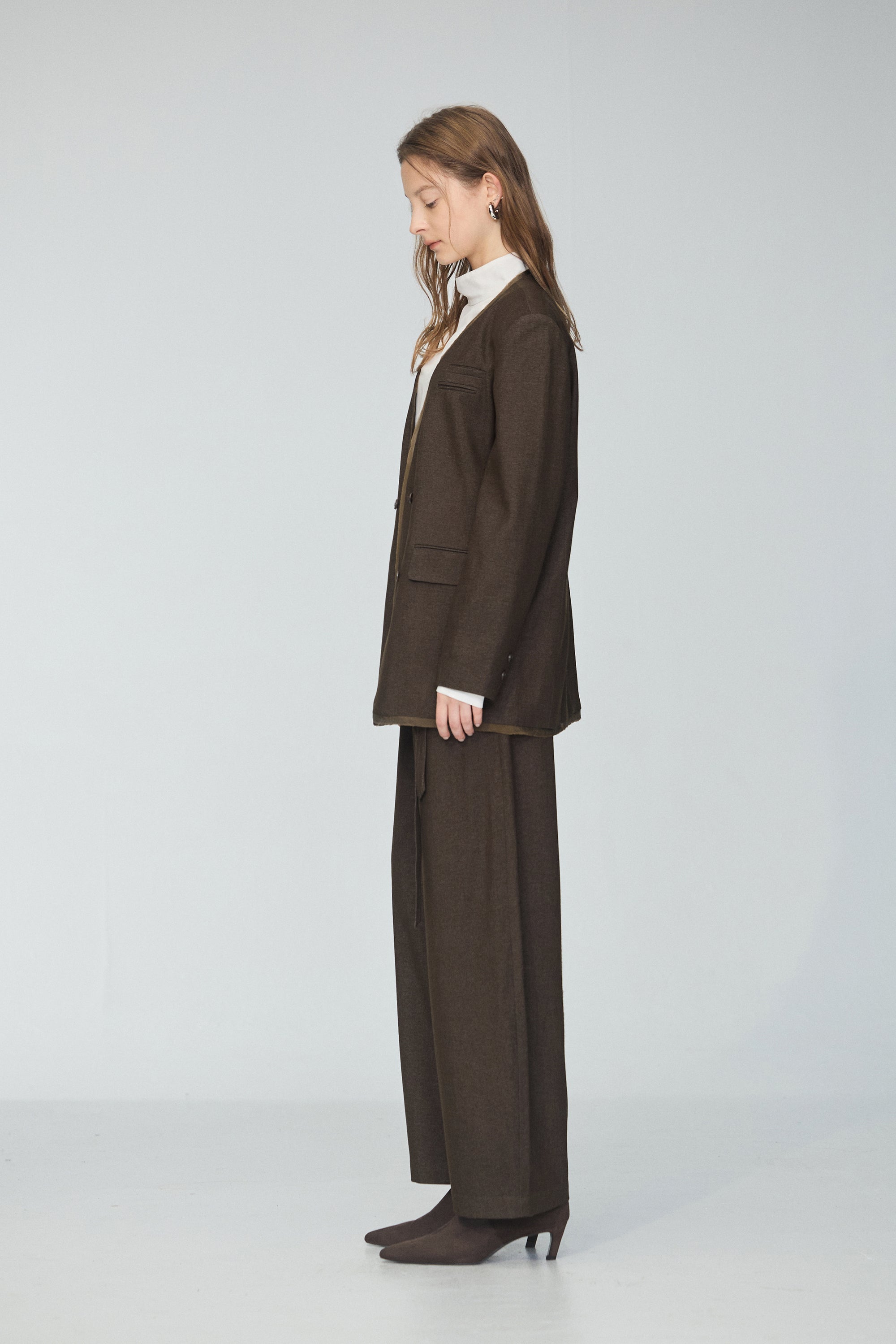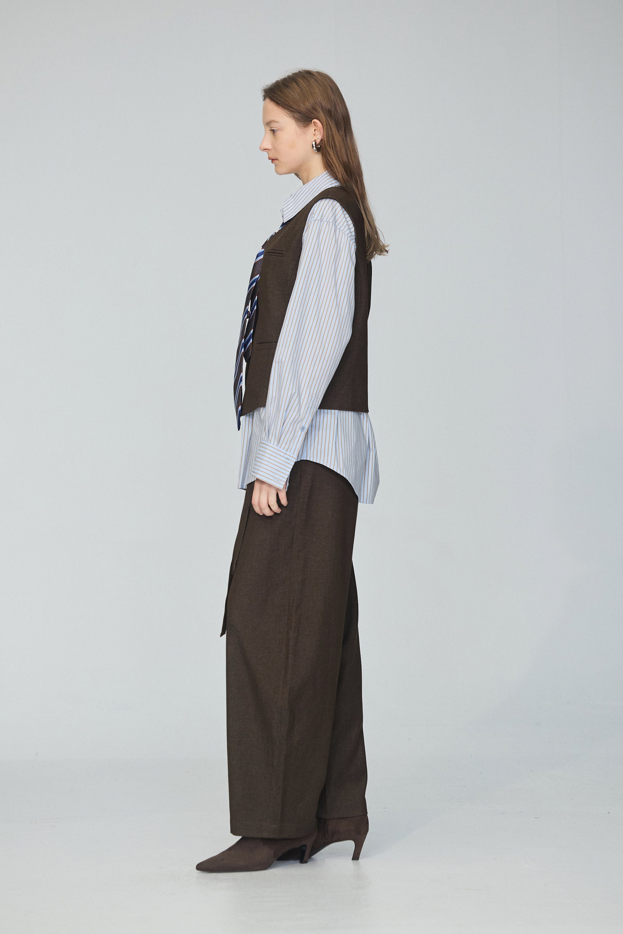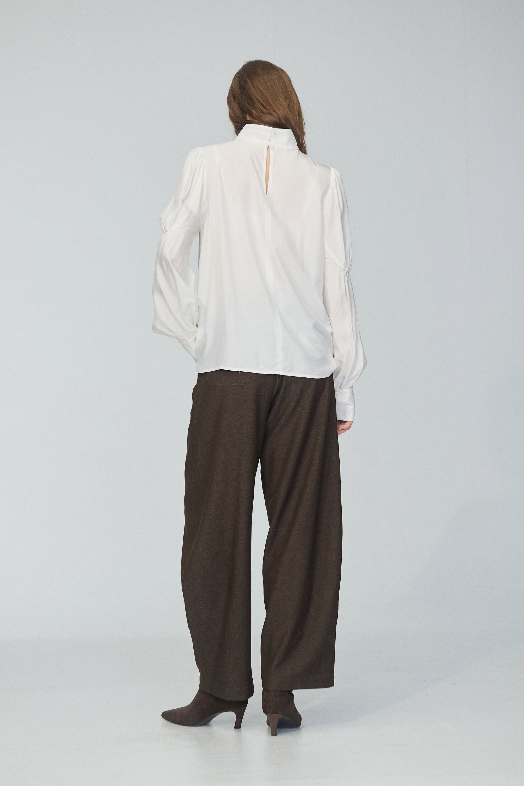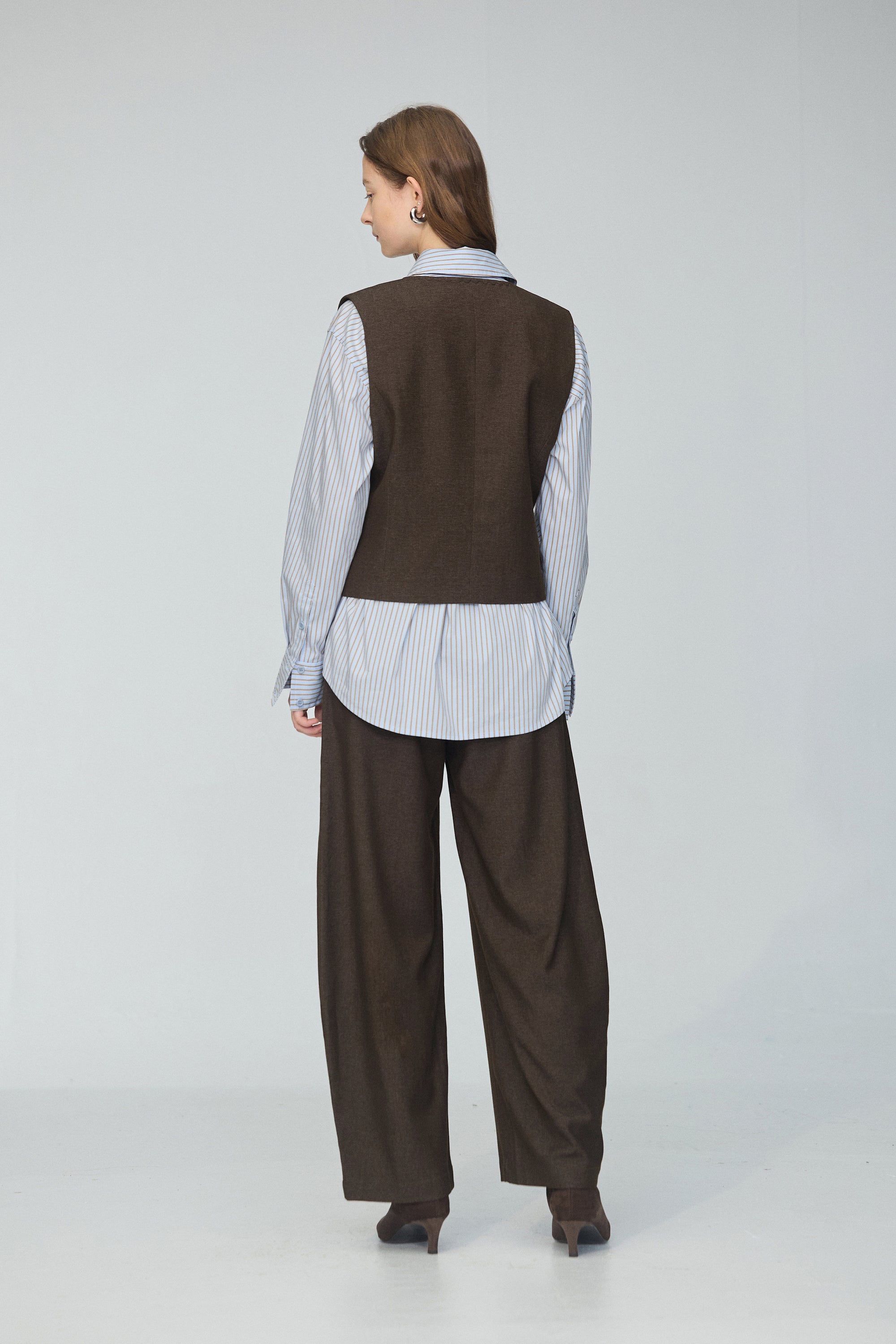皮革配色拼接寬版襯衫-咖