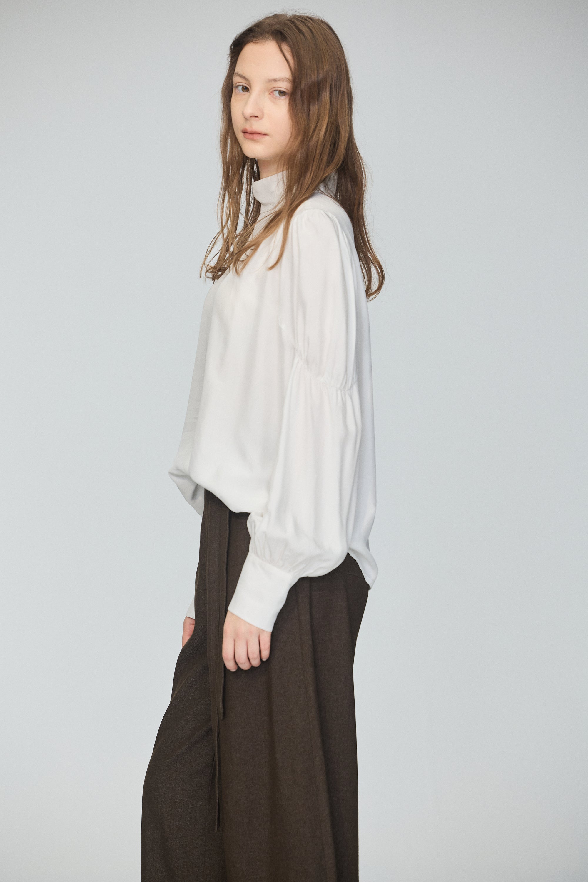 皮革配色拼接寬版襯衫-白
