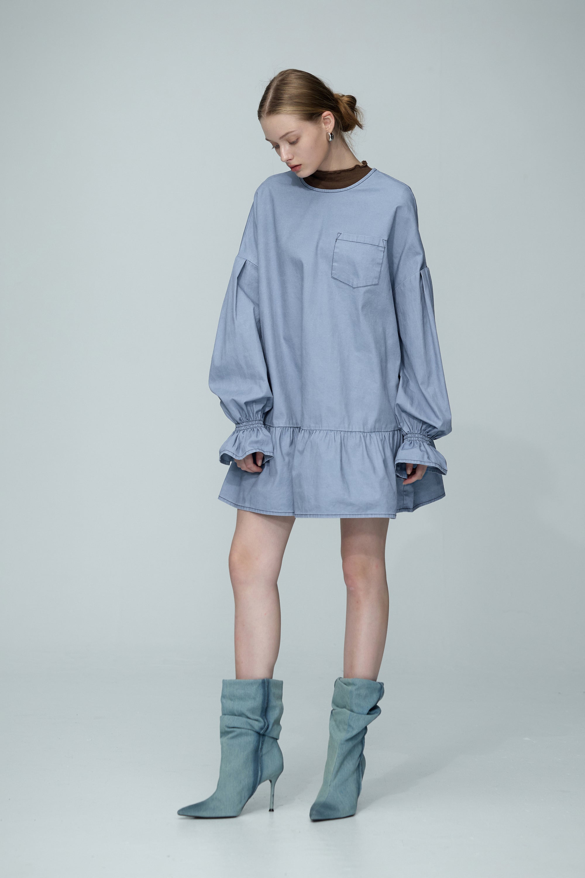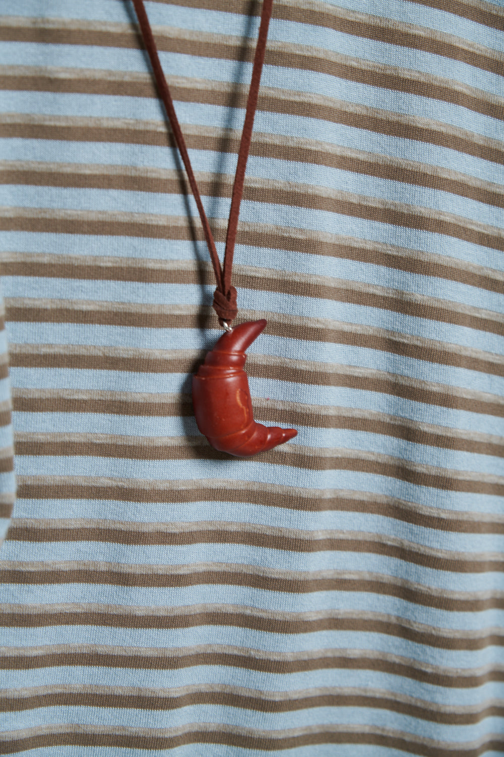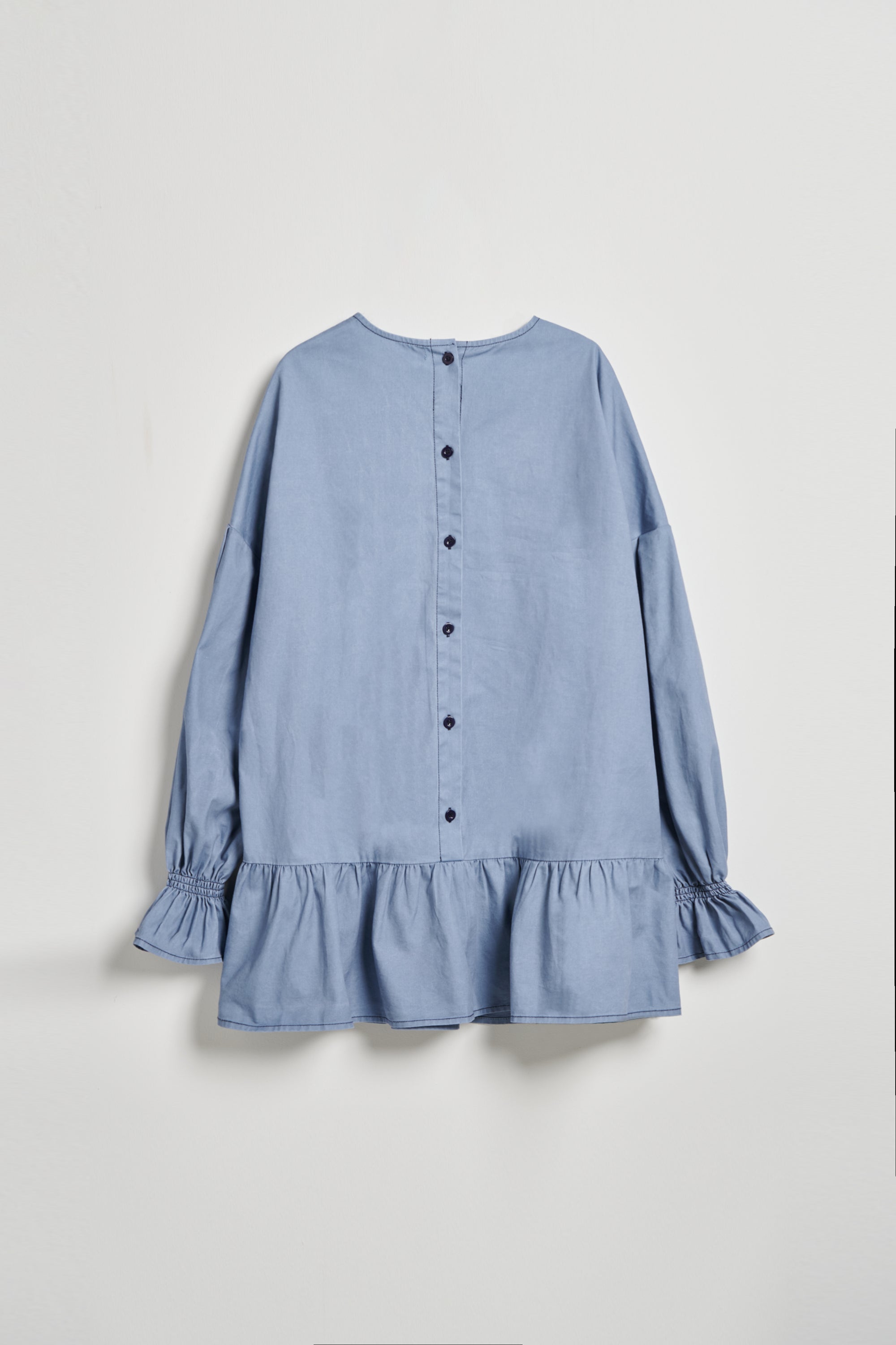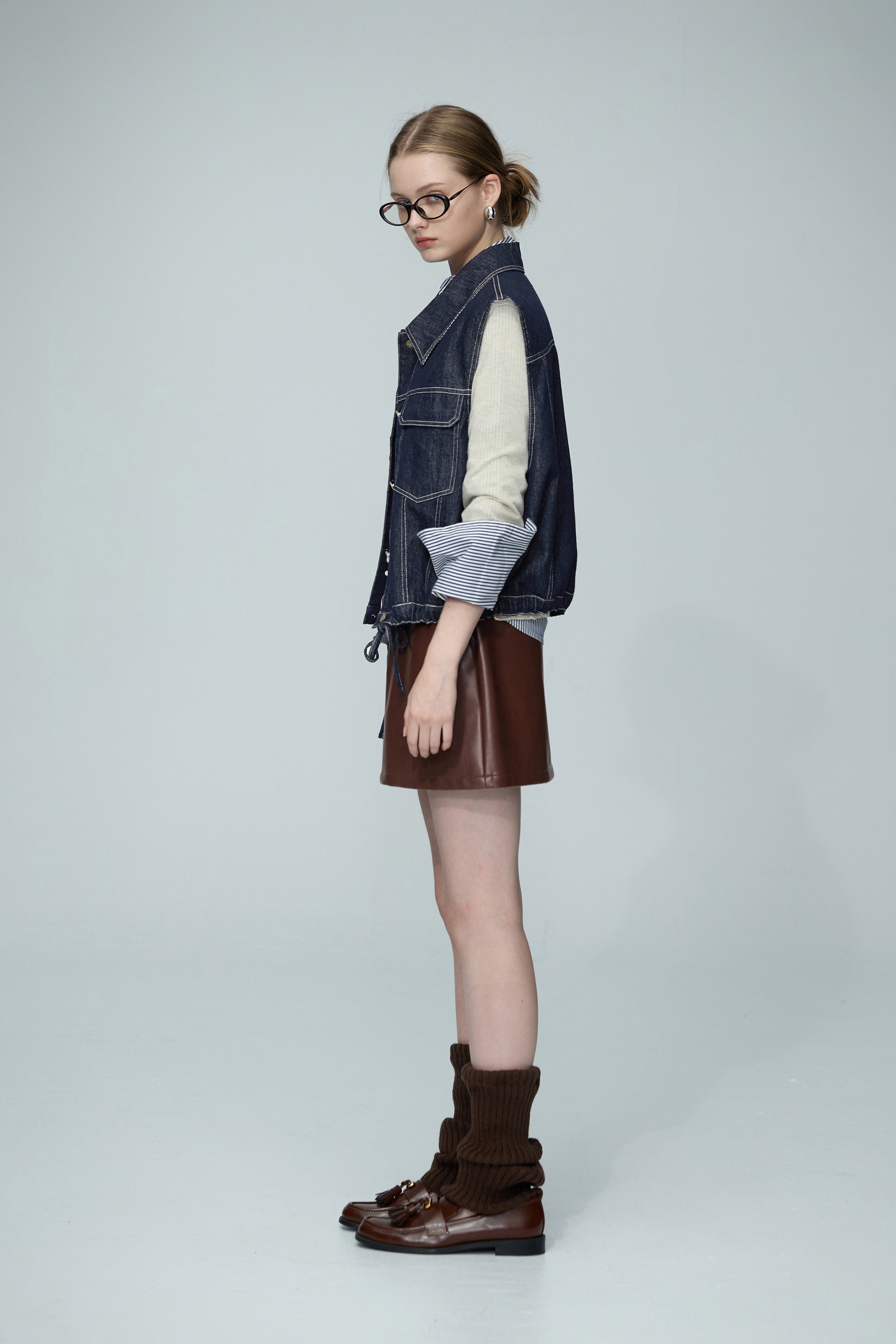 圓領條紋彈性褶皺收腰上衣(附項鍊)-藍色