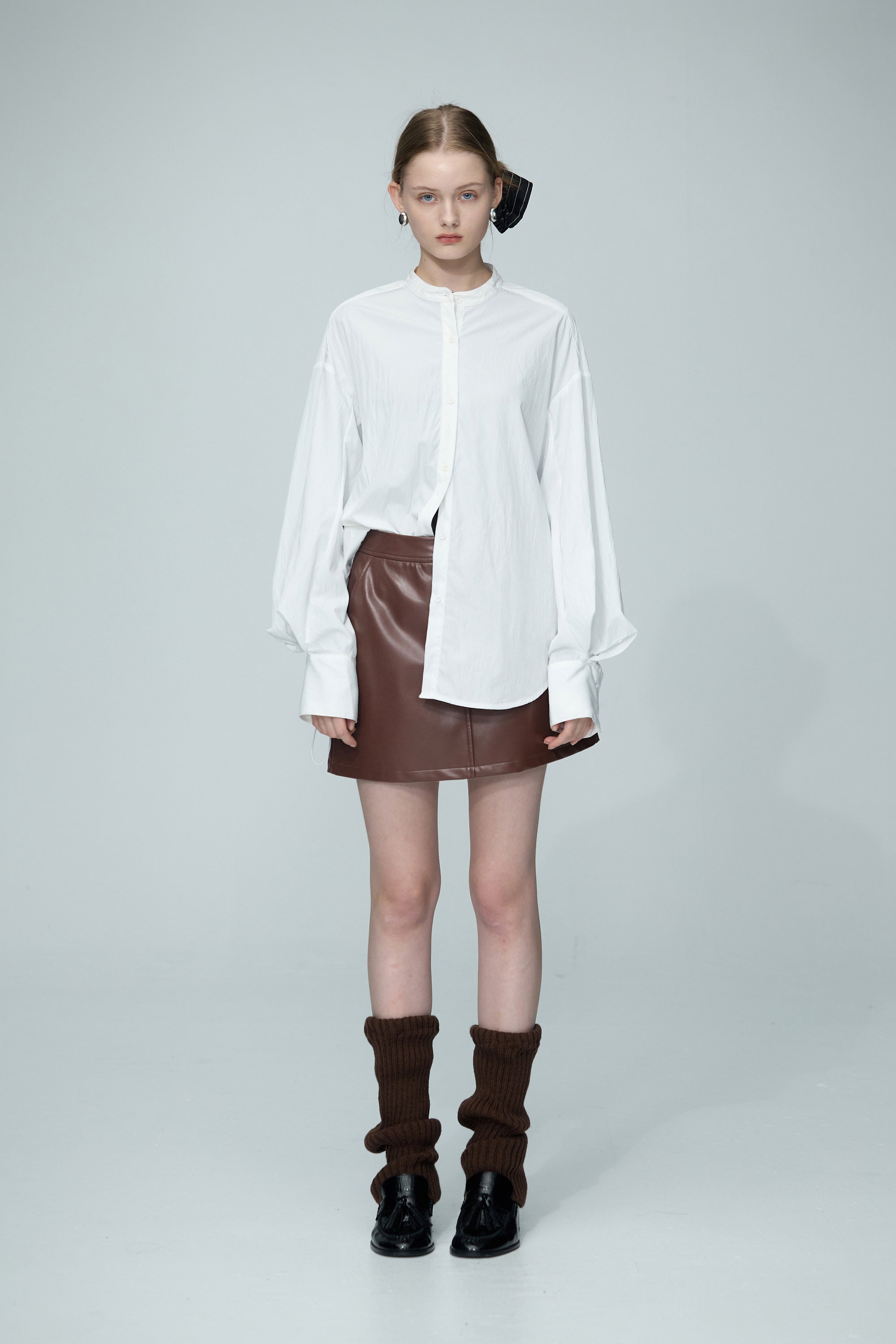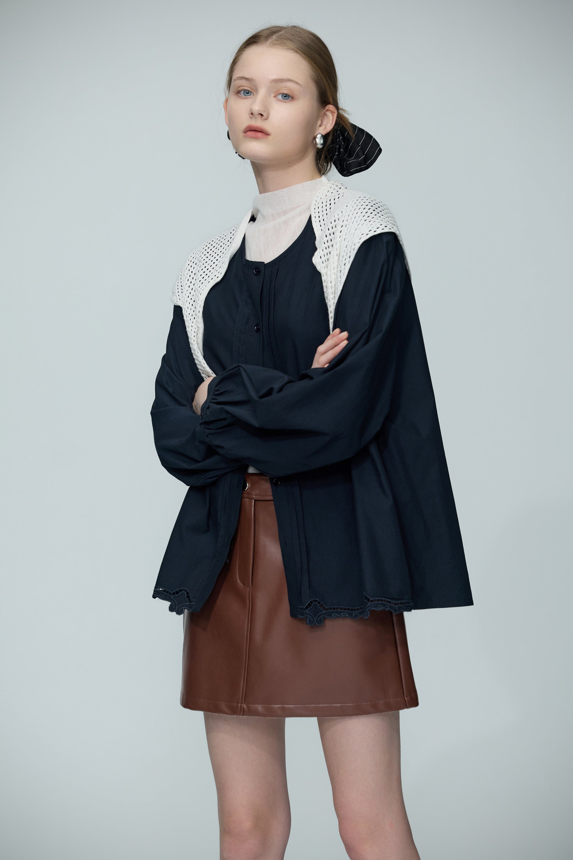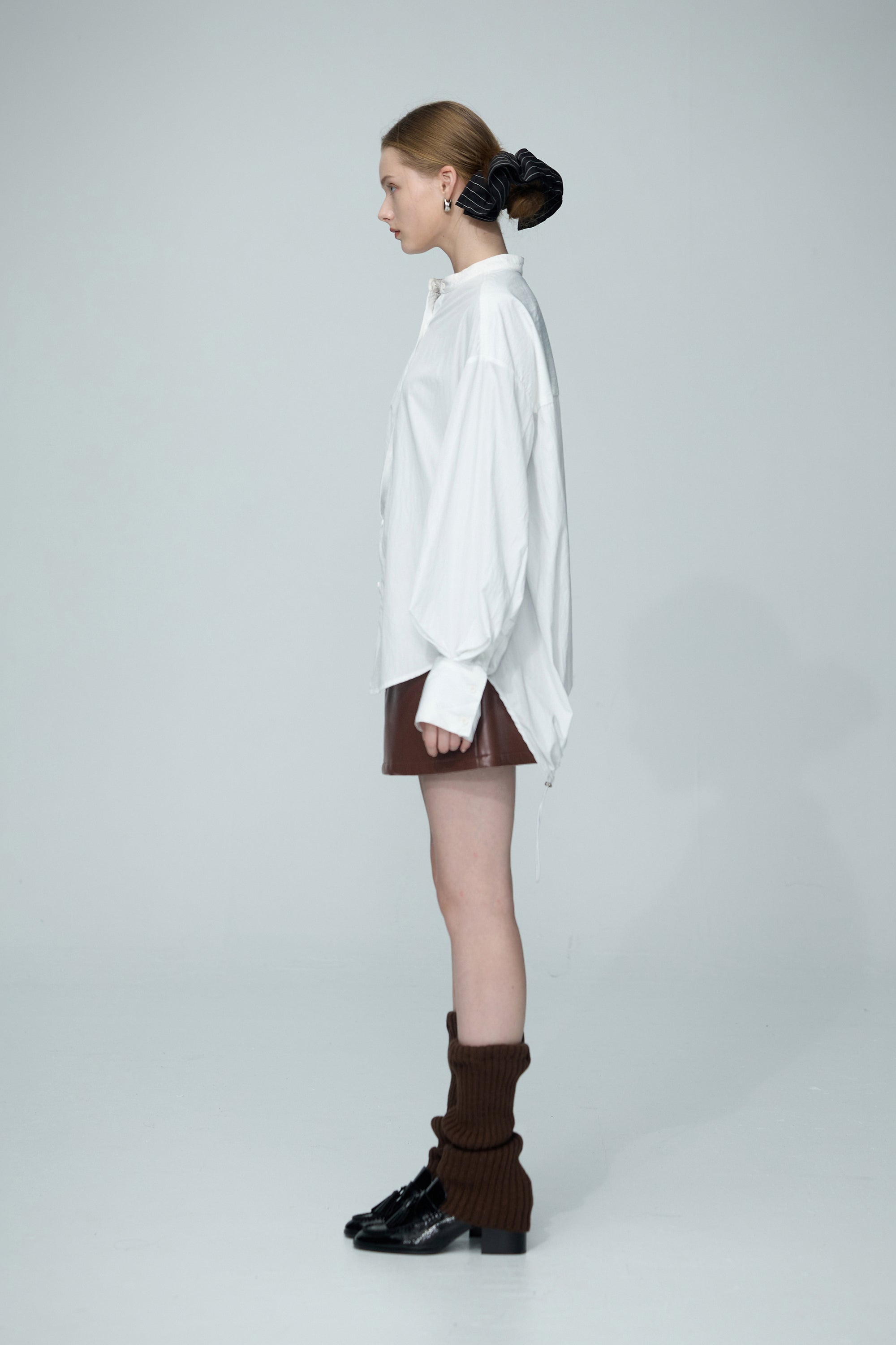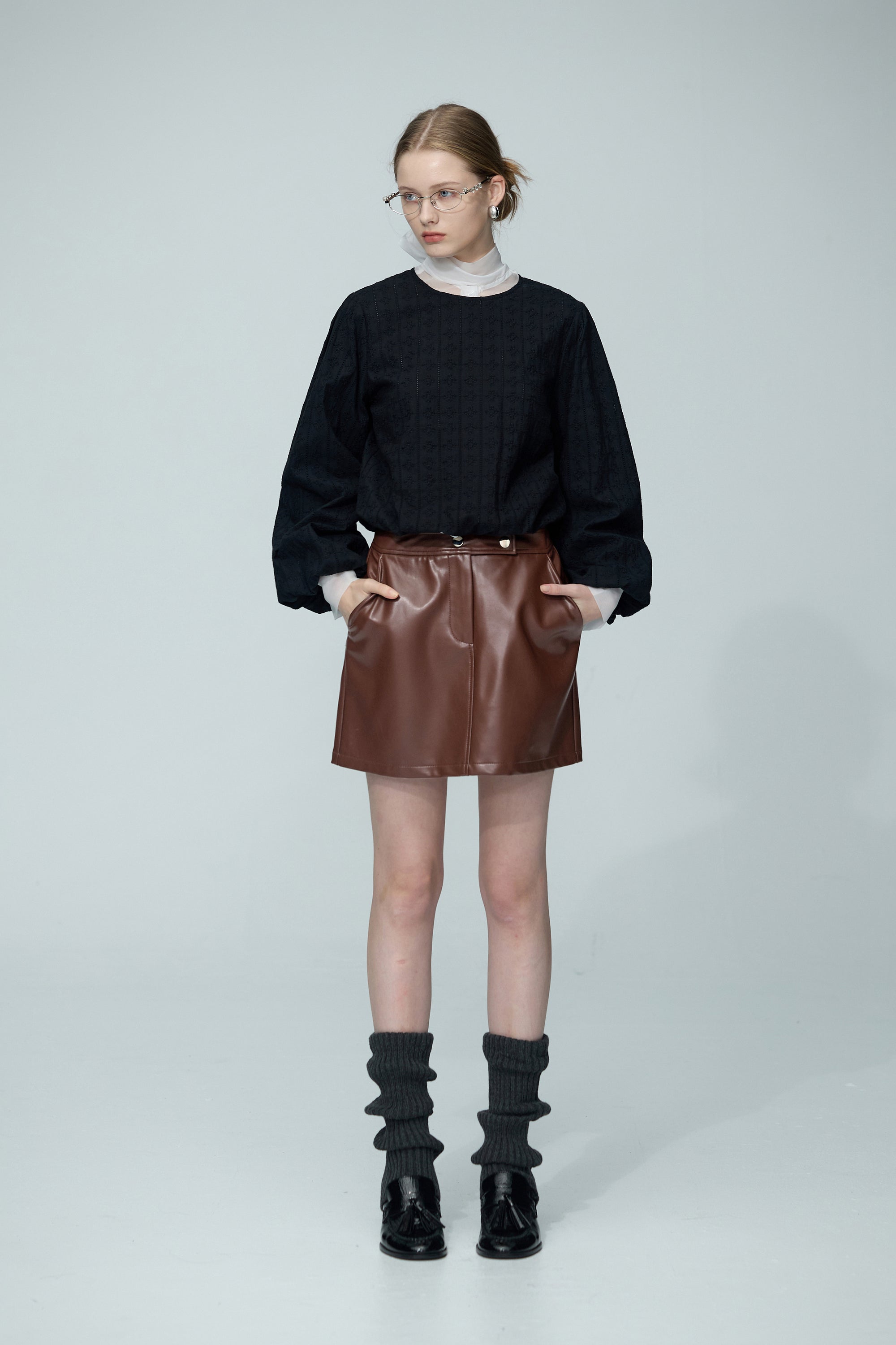 圓領條紋彈性褶皺收腰上衣(附項鍊)-黑