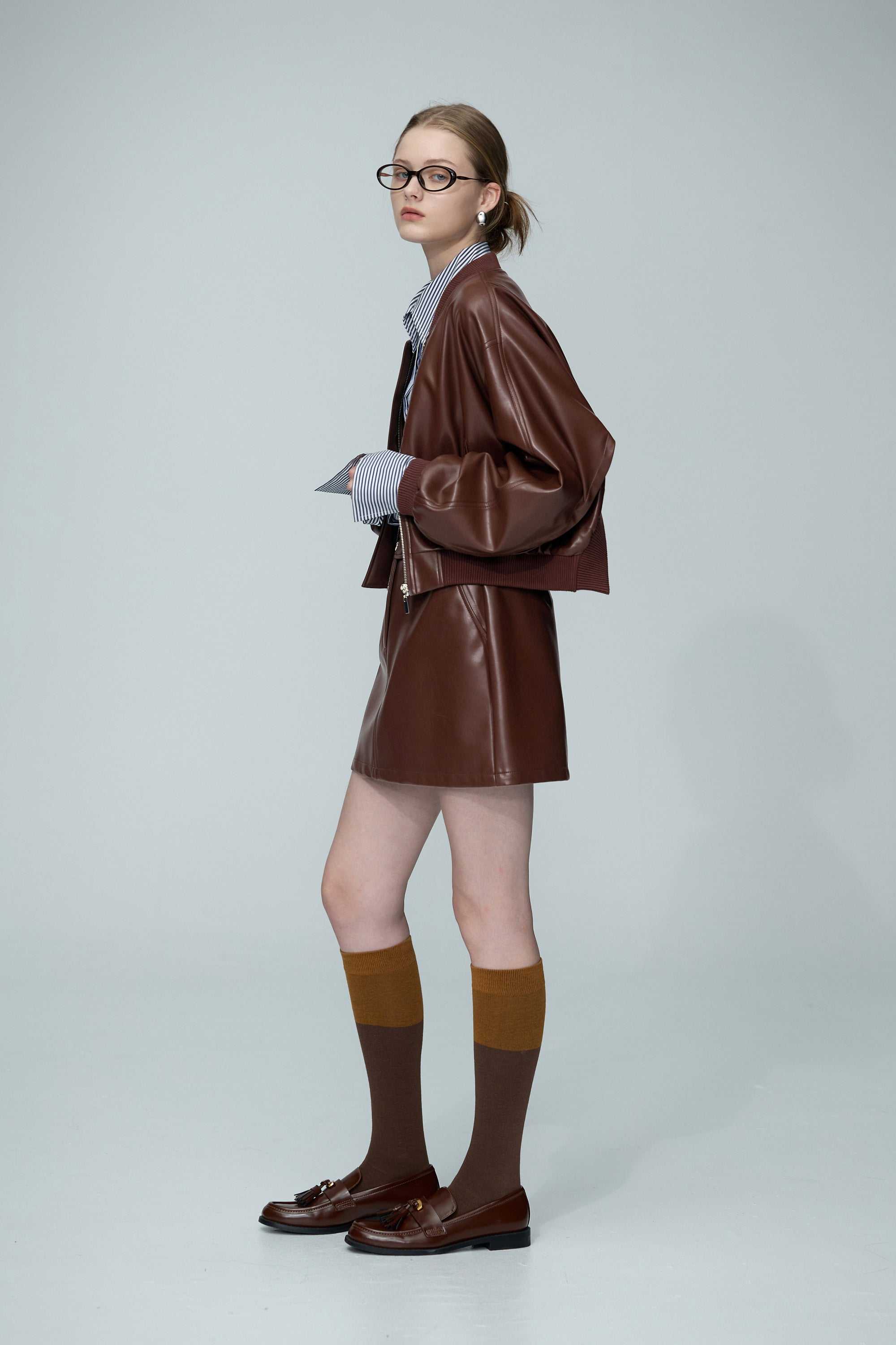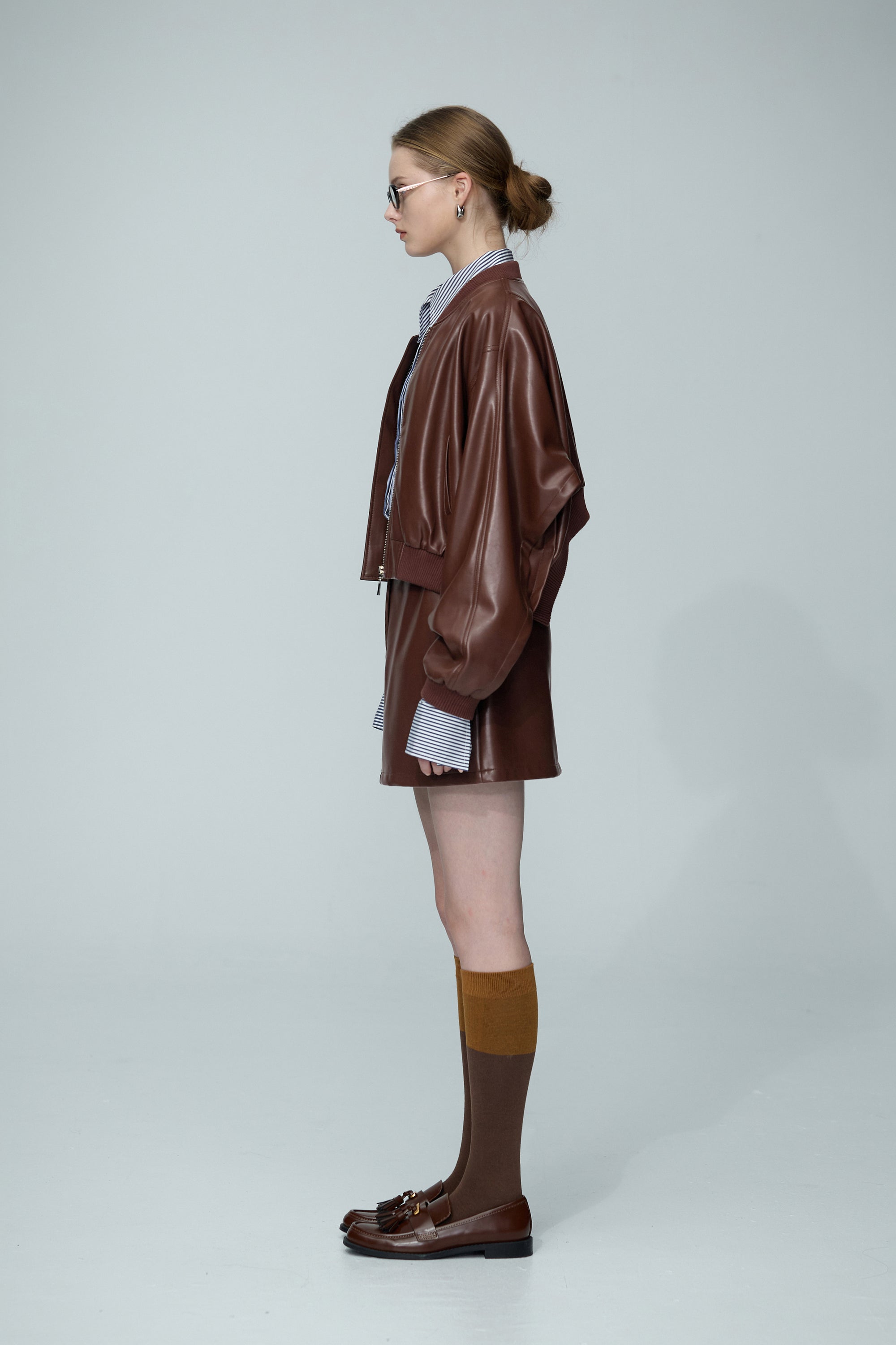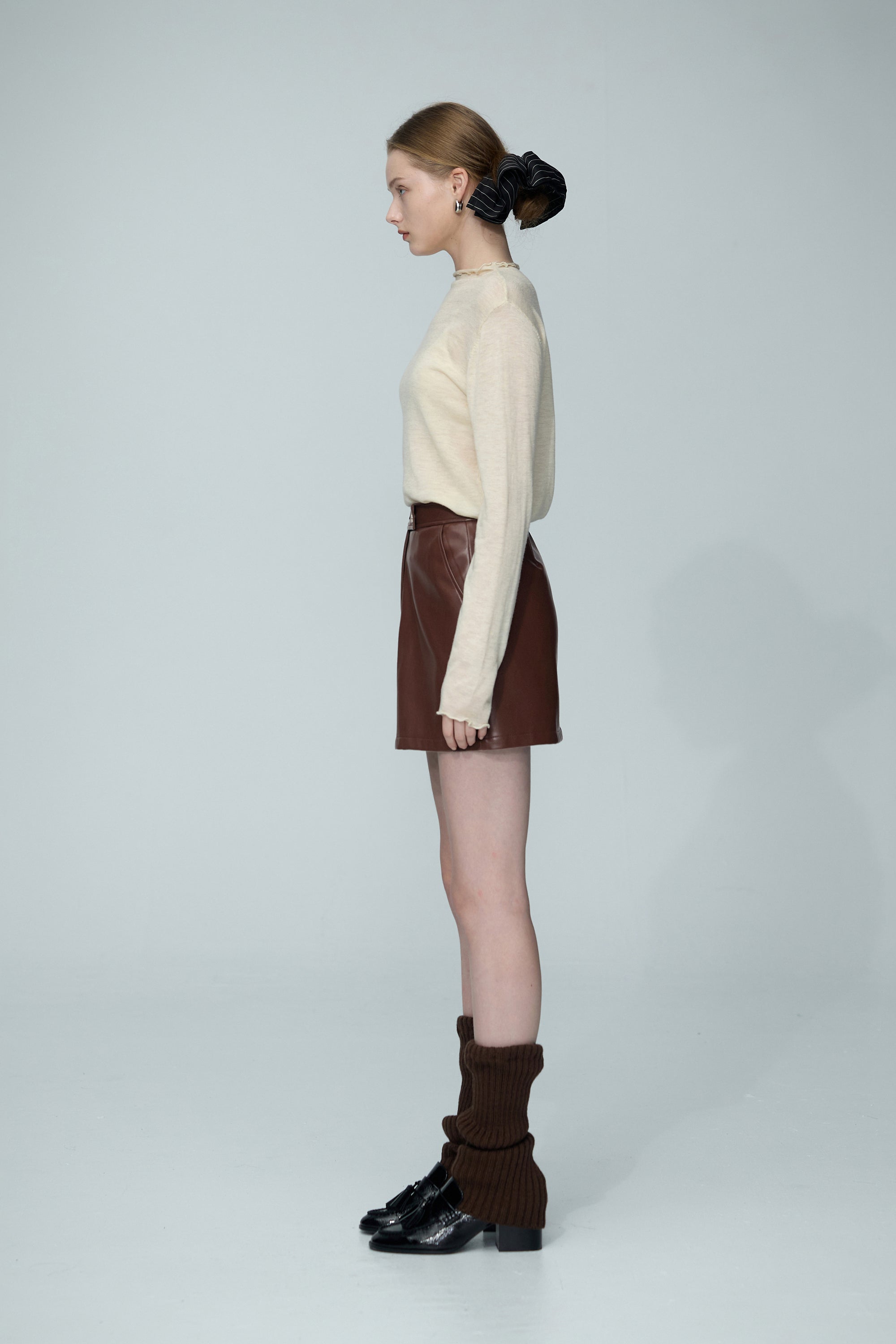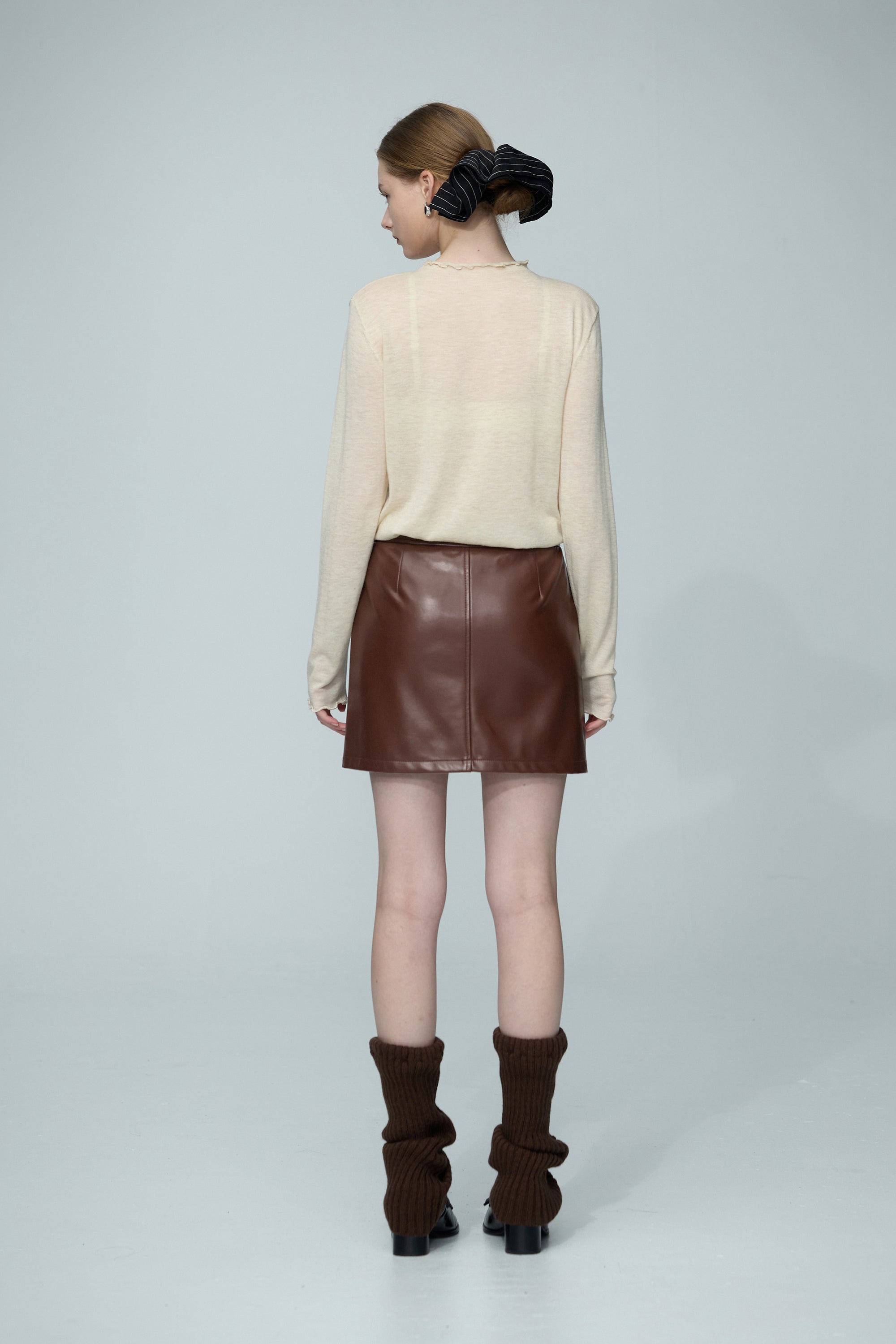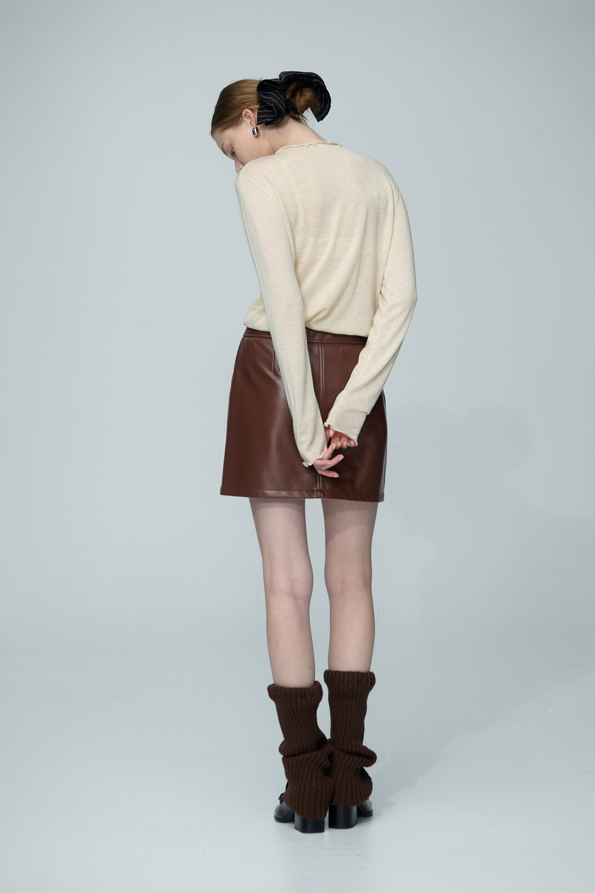 圓領條紋彈性褶皺收腰上衣(附項鍊)-黑